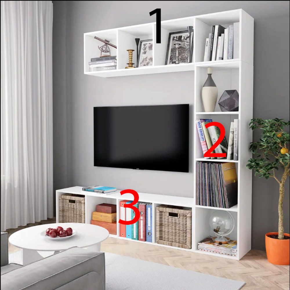 TV Furniture / Library Set of 3 pcs.white Color 175x25x180 cm,tv table,entertainment center with bookcases