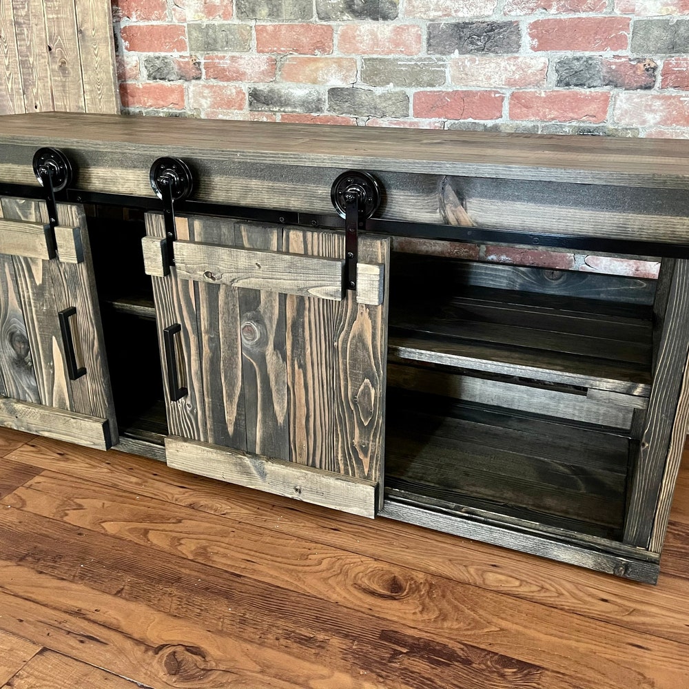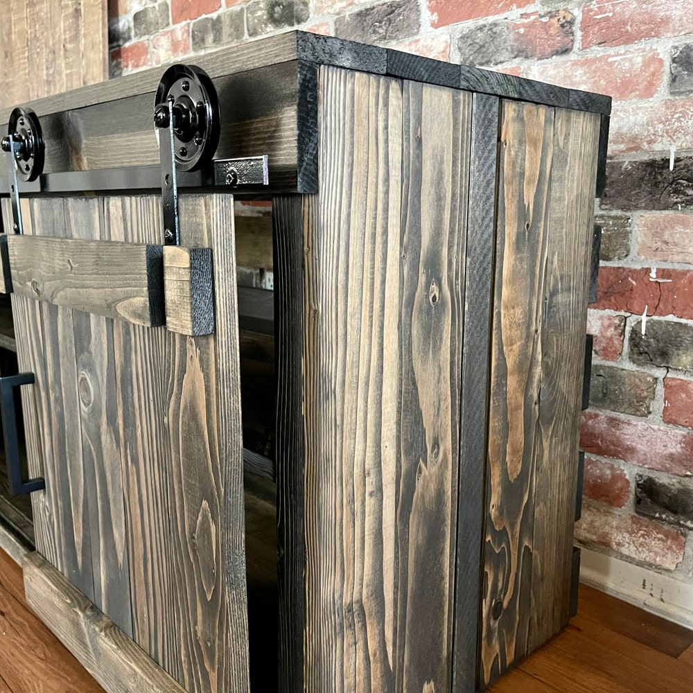 TV Stand Console Barn Doors Rustic Modern Table Buffet Cabinet Coffee Bar Kitchen Island Farmhouse Center Entry Side Storage