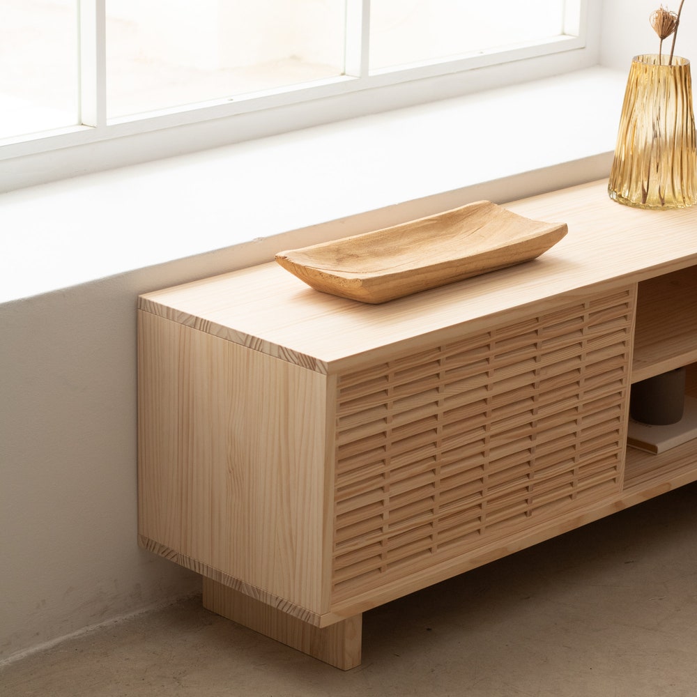 We believe in the soul and warmth of natural finishes and the possibilities solid wood offers. Our wood tv stand solid wood is of sustainable origin, totally natural, and of the best quality. We want you to fall in love with your living room furniture and give it the ultimate personal touch to its finish.