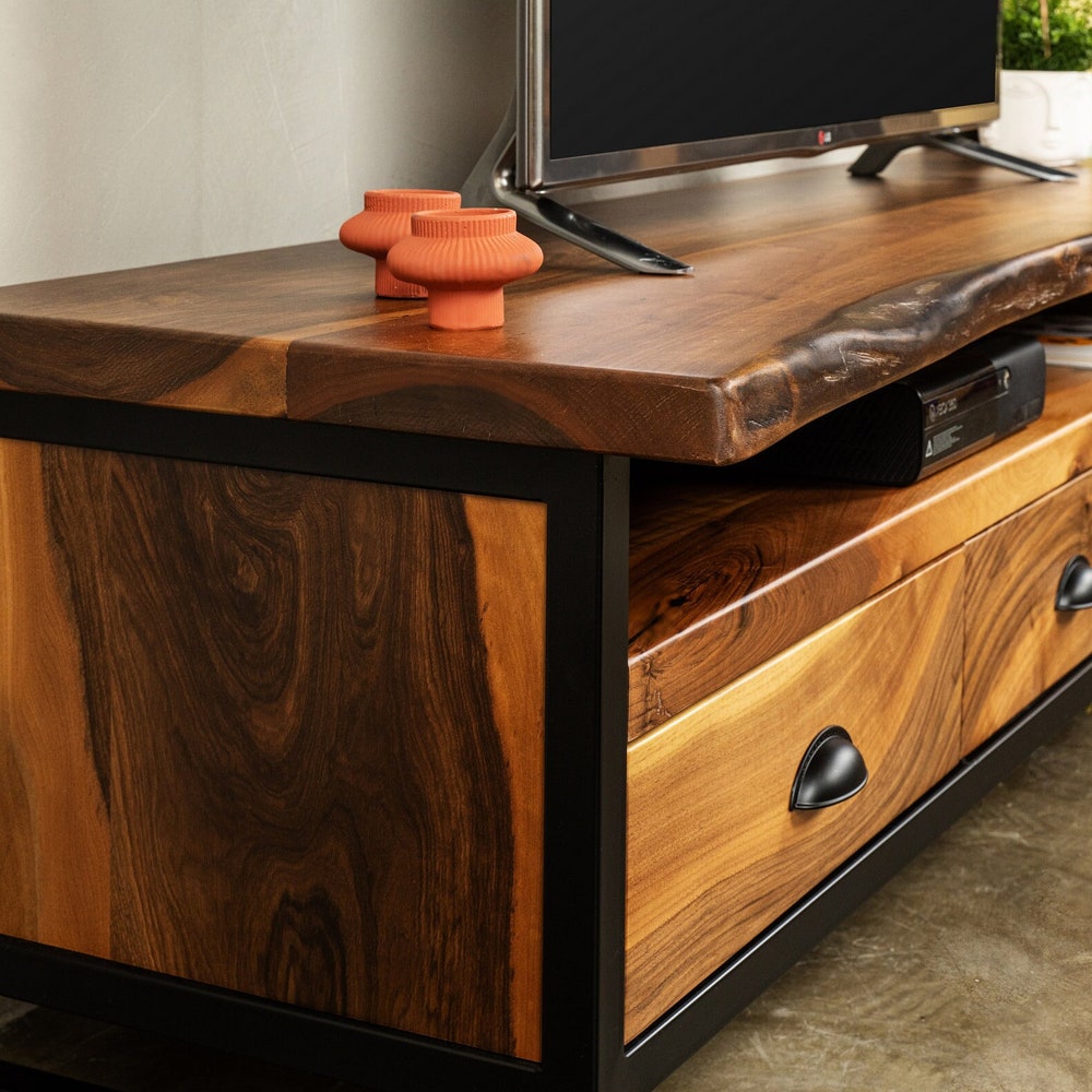 This is a piece of natural luxury Console Tables industrial for Your home. Made completely from solid Walnut. Drawer tv unit is treated with natural Oil to highlight the wood and its pattern. Walnut is considered one of the strongest woods in nature with beautiful light beams in its pattern. The front face of the Farmhouse console is different for each product due to different wood patterns. Perfect for a home setting or as an office piece.A mid-century tv stand ideal for a modern, eclectic and traditional interior. the metal media console enriches interior providing warmth and light with a touch of the modern approach The piece is just as practical as it is beautiful.