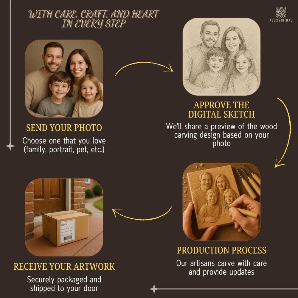 📷 We provide progress updates during carving so you can watch your artwork come to life.
