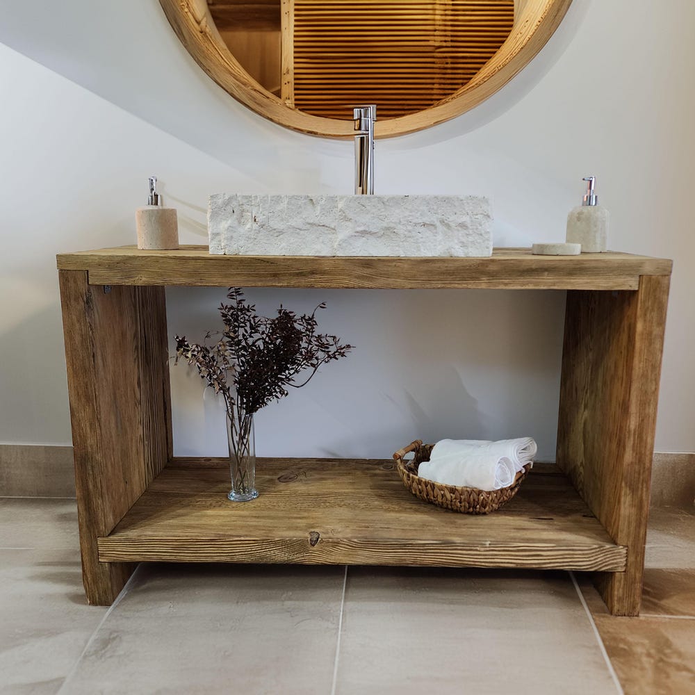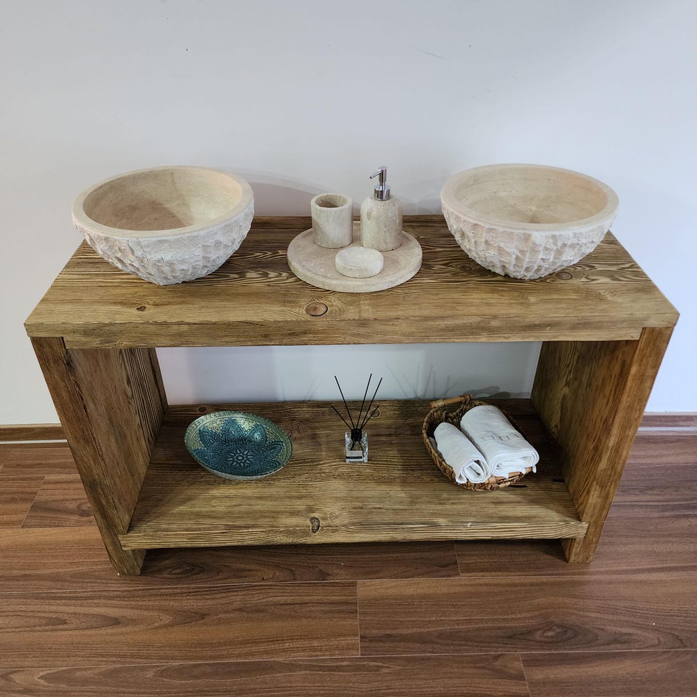 Unique Rustic Vanity Table – Handmade Reclaimed Wood for Bathroom – Farmhouse Sink Console – Wooden Bathroom Storage – Natural Wood Decor