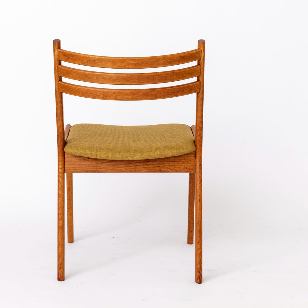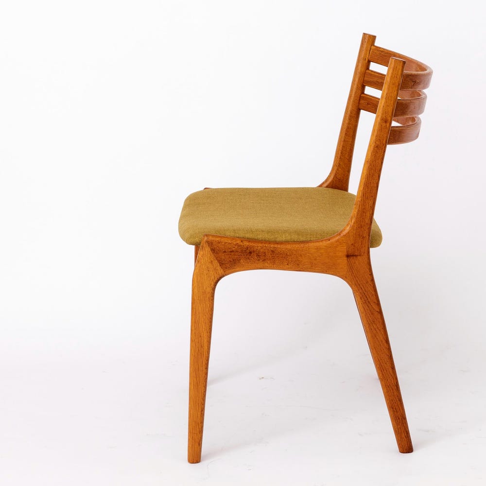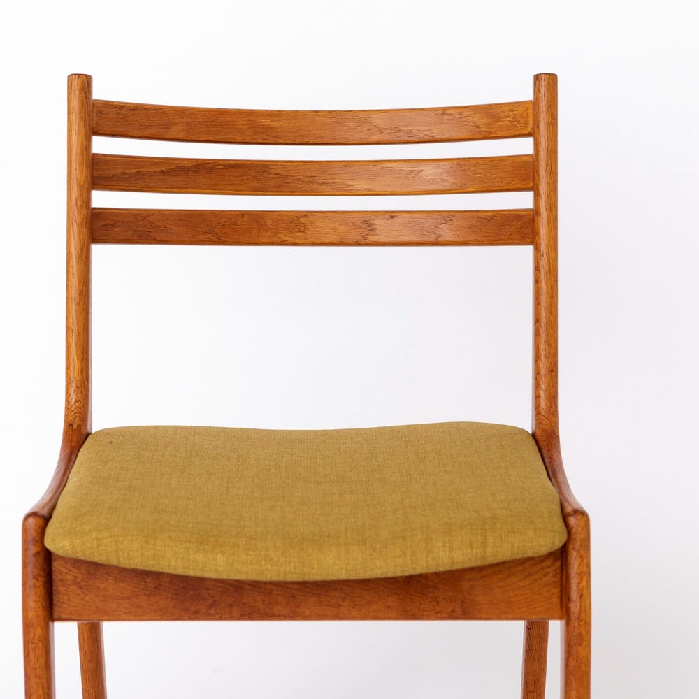 This stunning vintage chair from KS Møbler embodies the minimalist elegance and superior craftsmanship of mid-century Danish design. Featuring a solid oak wood frame, the chair has been lovingly refurbished and oiled to highlight its natural beauty. The seat has been reupholstered with a soft light green textile cover, offering a fresh and inviting look.