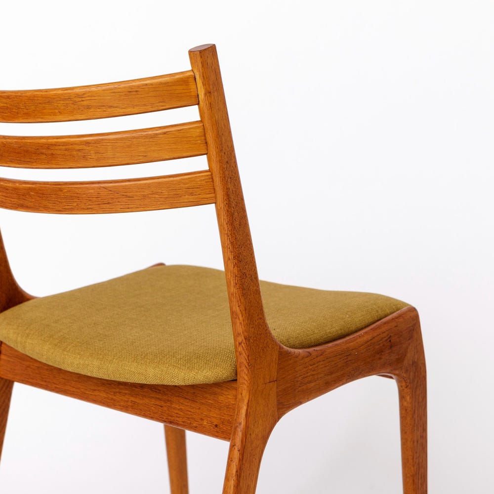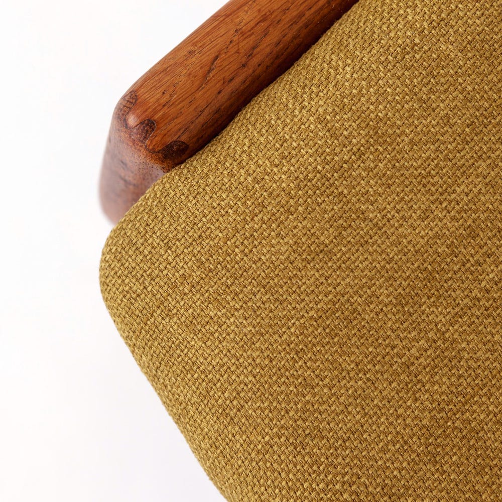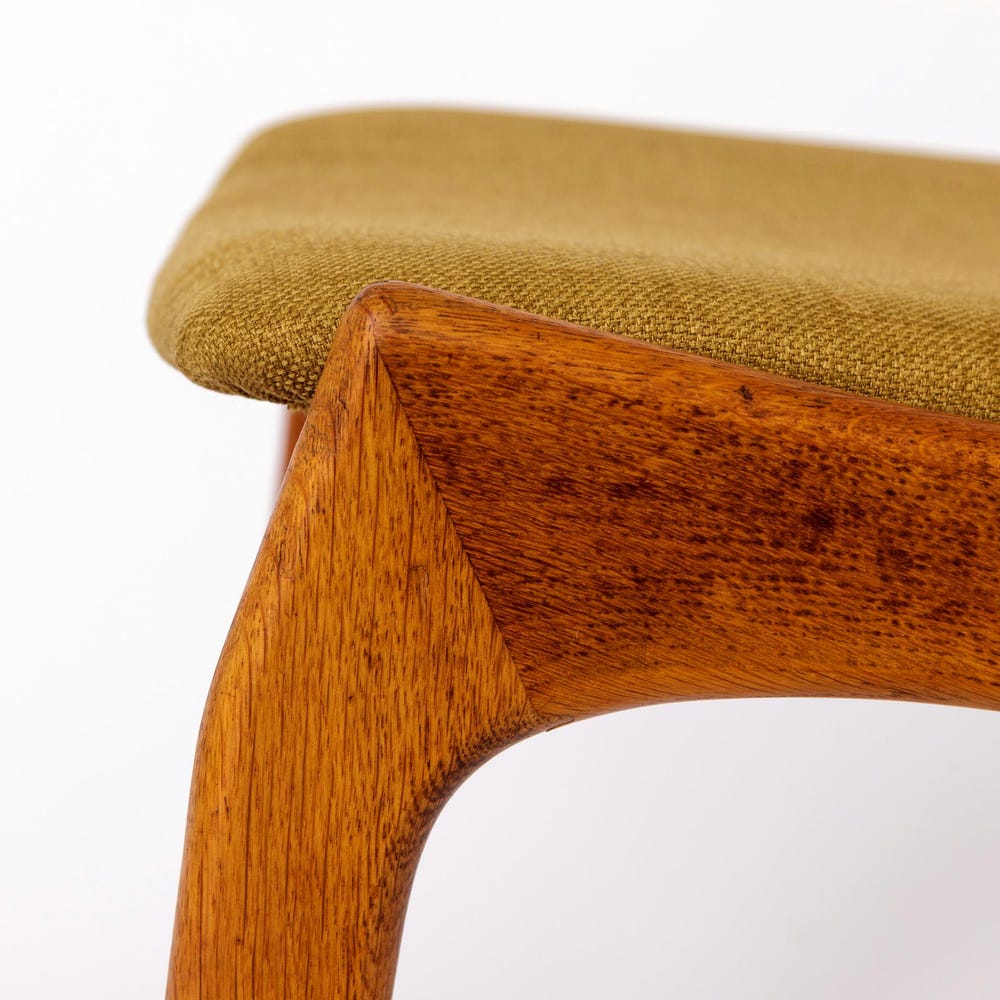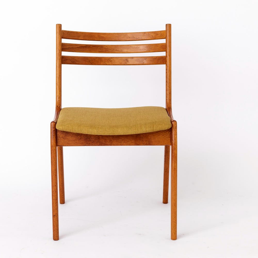 This stunning vintage chair from KS Møbler embodies the minimalist elegance and superior craftsmanship of mid-century Danish design. Featuring a solid oak wood frame, the chair has been lovingly refurbished and oiled to highlight its natural beauty. The seat has been reupholstered with a soft light green textile cover, offering a fresh and inviting look.