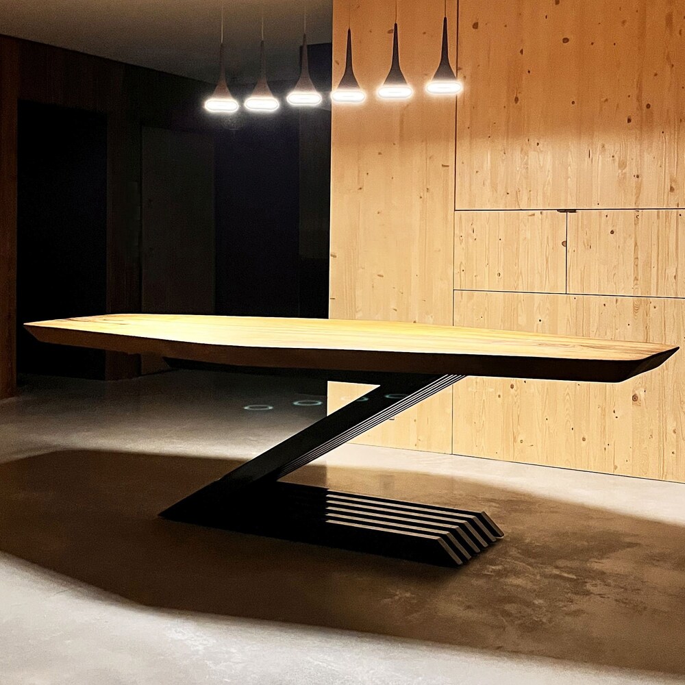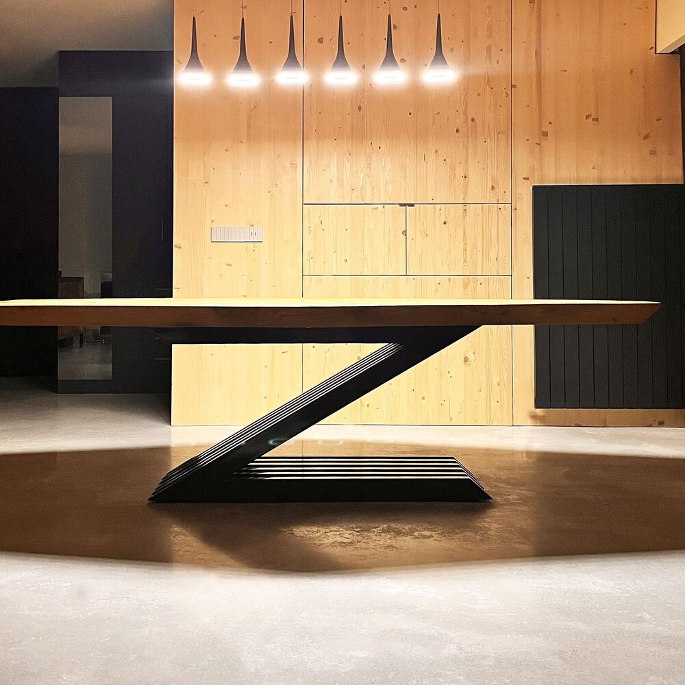 Unique Z Design Massive Chestnut Wood Dining or Office Table for 8 With Metal Legs 260 cm x 128 cm / 102″x50″