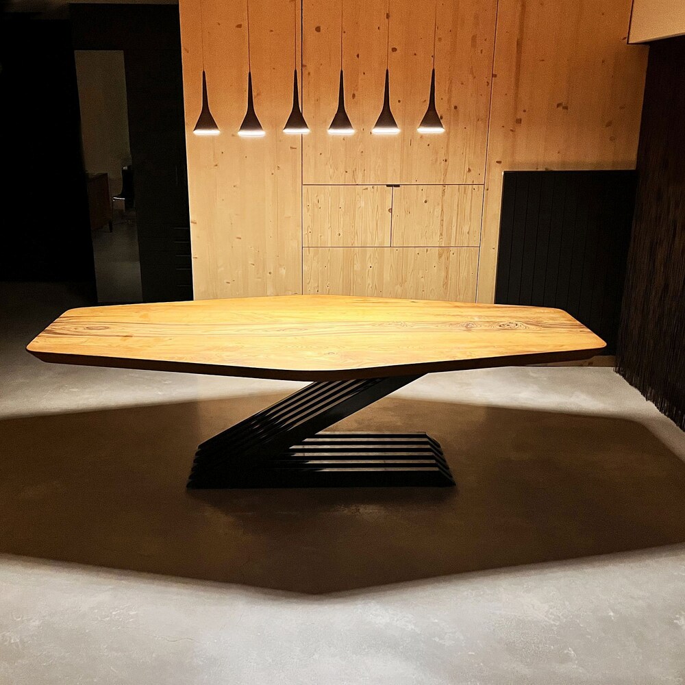 Handmade dining or office table made of massive Turkish chestnut wood with metal legsHandmade, unique design, a piece of artDesigned by an artistEach table is unique Table is suitable for 8 chairsThe surface is finished with linseed oilYou can use as a dining table in your house or as a meeting table in your officeThe […]
