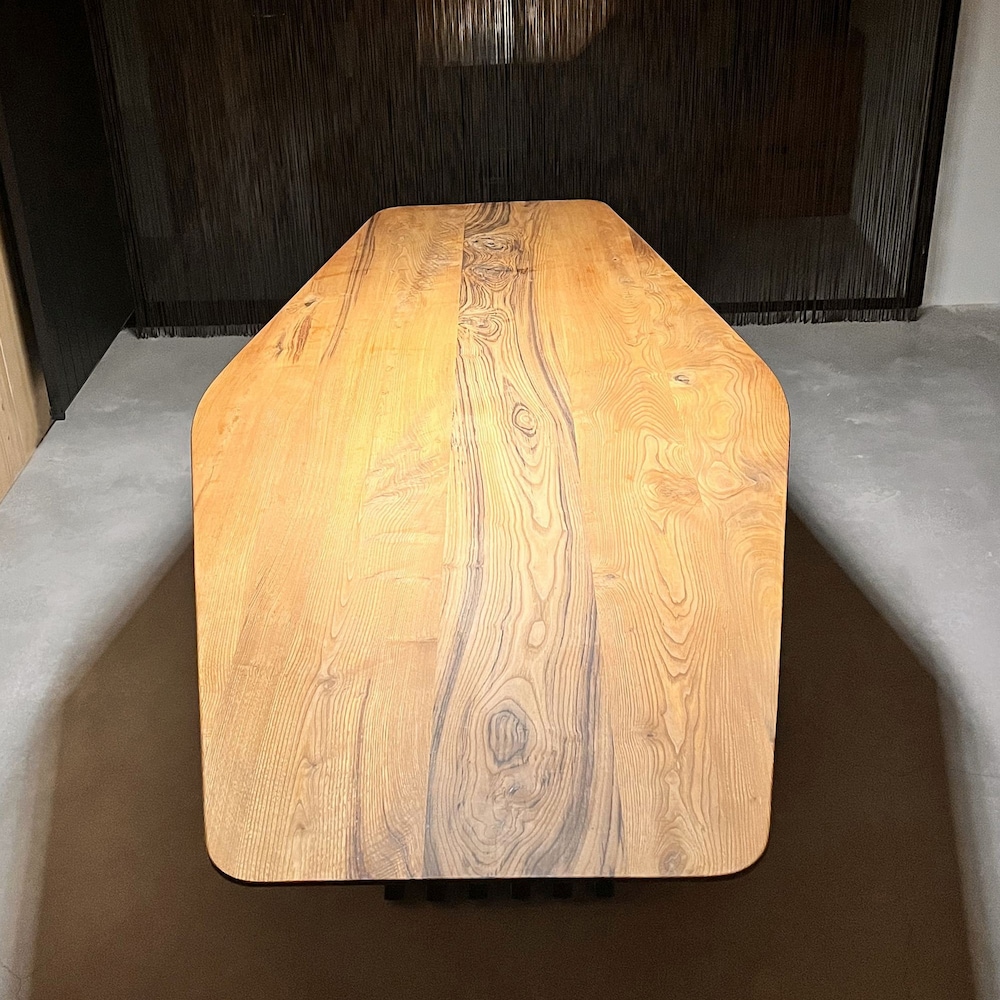Handmade dining or office table made of massive Turkish chestnut wood with metal legs