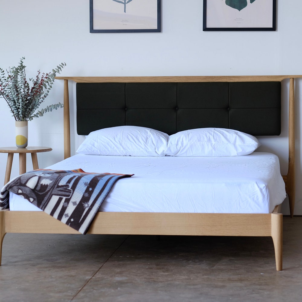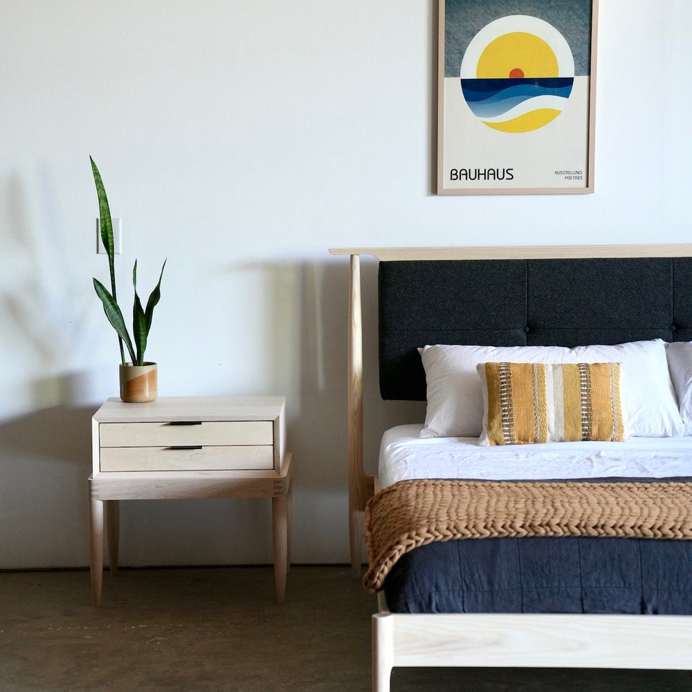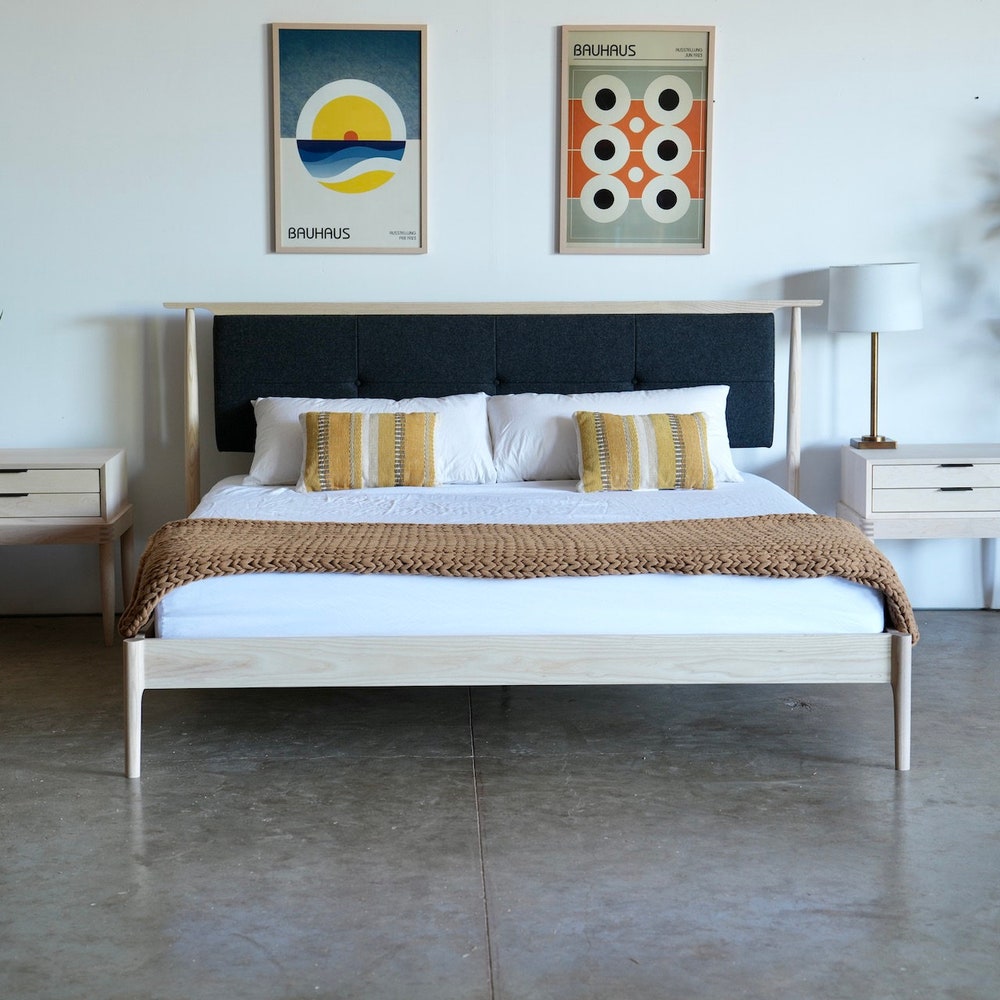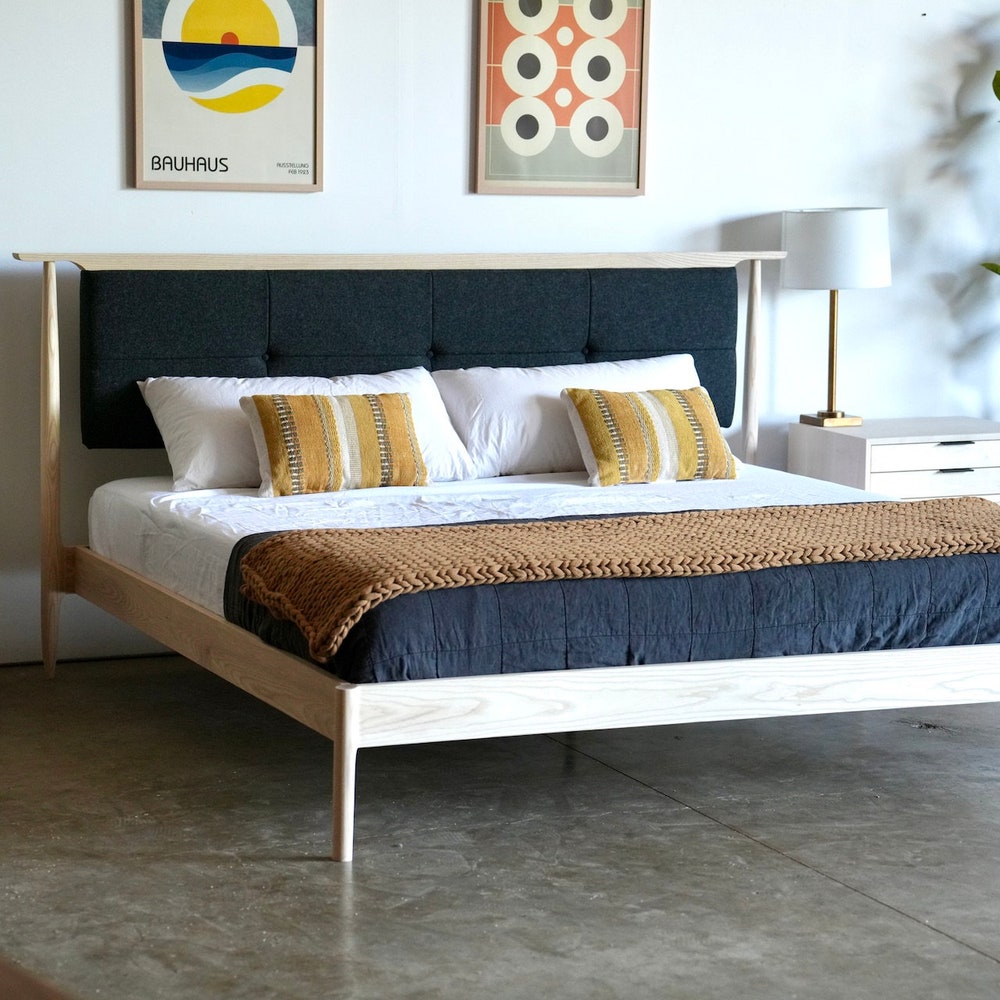 Upholstered Headboard Bed | Made To Order Solid Wood Platform Bed | Mid Century Modern Storage Bed | Walnut Bedframe | Maple Bed | Bed No. 3