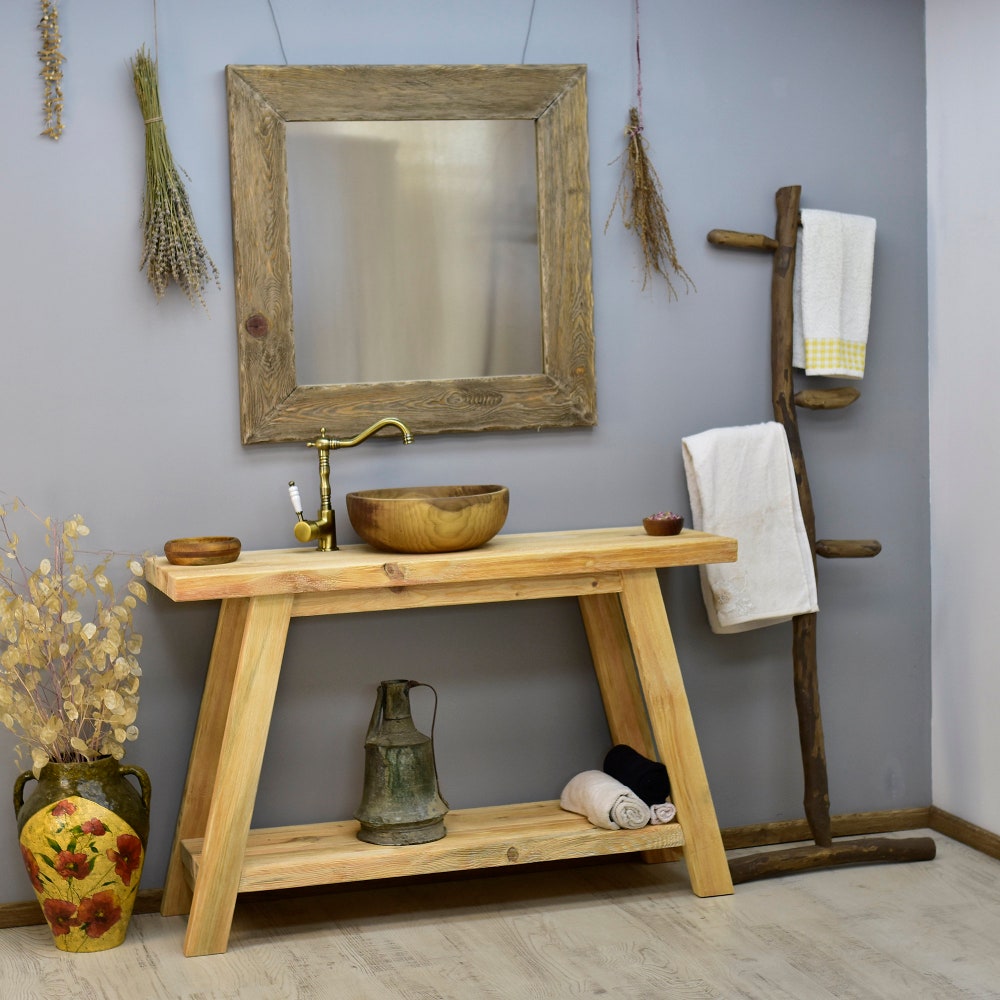 Vanity Bathroom Sink Vanity Reclaimed Wood Live Edge Handmade Rustic Vanities Sink Farmhouse Wooden Decor Medieval Wooden Gift for Her