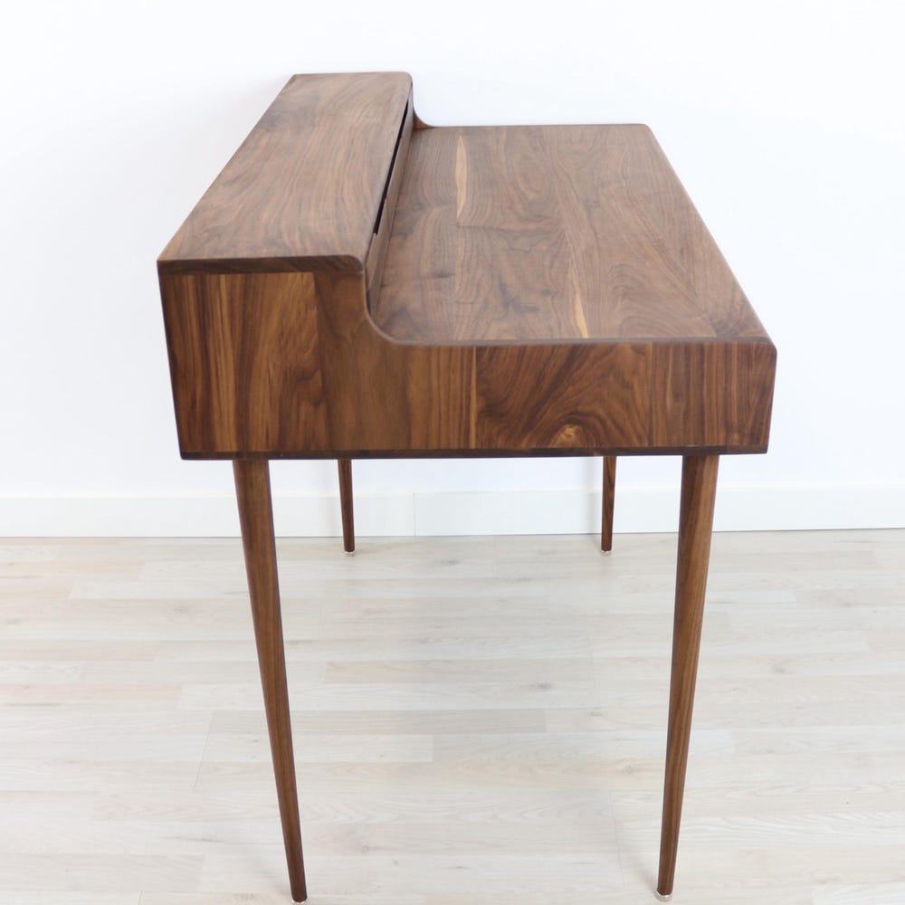 American Walnut Wooden Desk, Minimalist Computer Desk, Office Desk with Cable Organizer & Headphone Holder, Personalized Gift