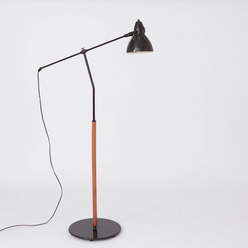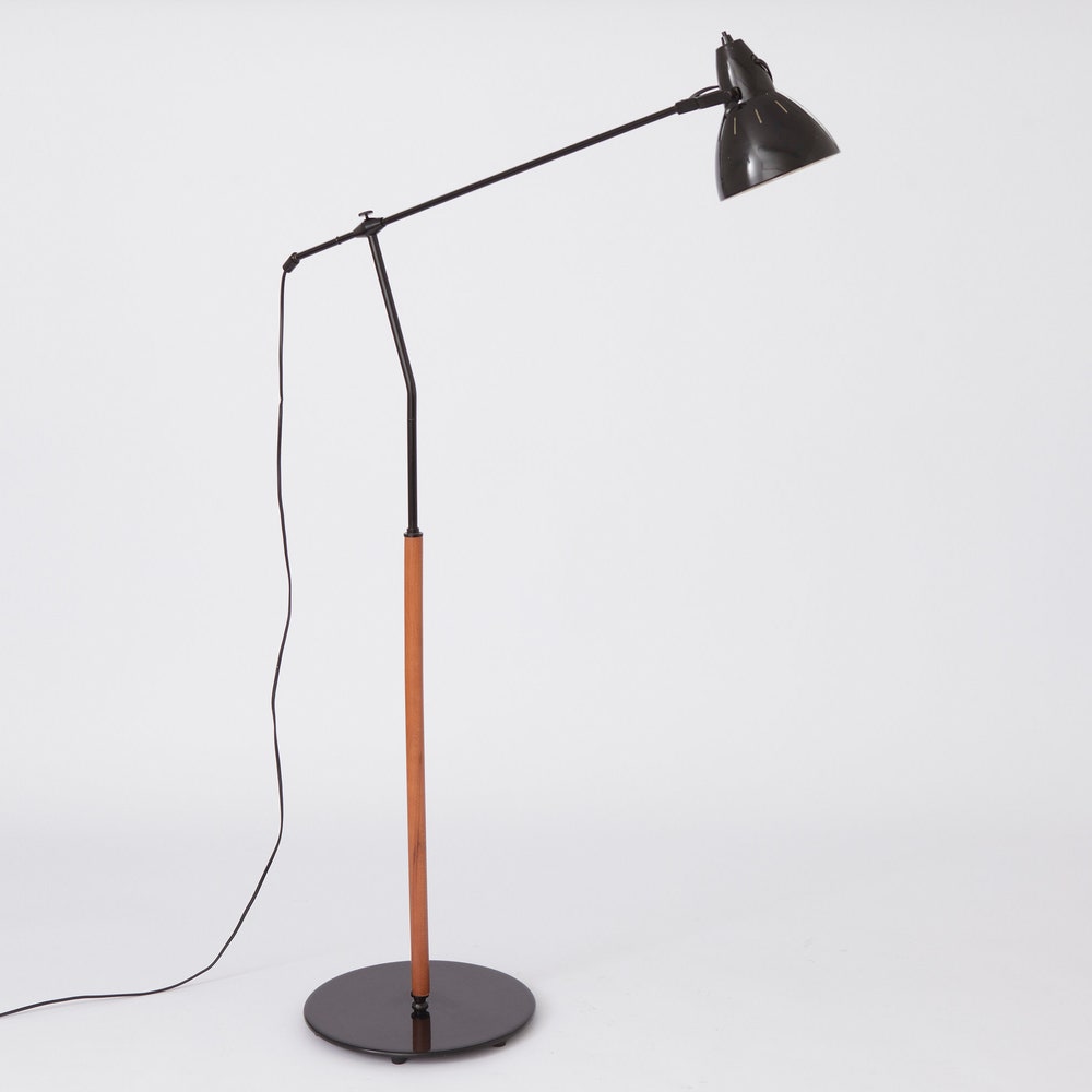 Vintage Floor Lamp – 1960s-1970s, Black Metal & Teak Wood Elements, Very Good Condition