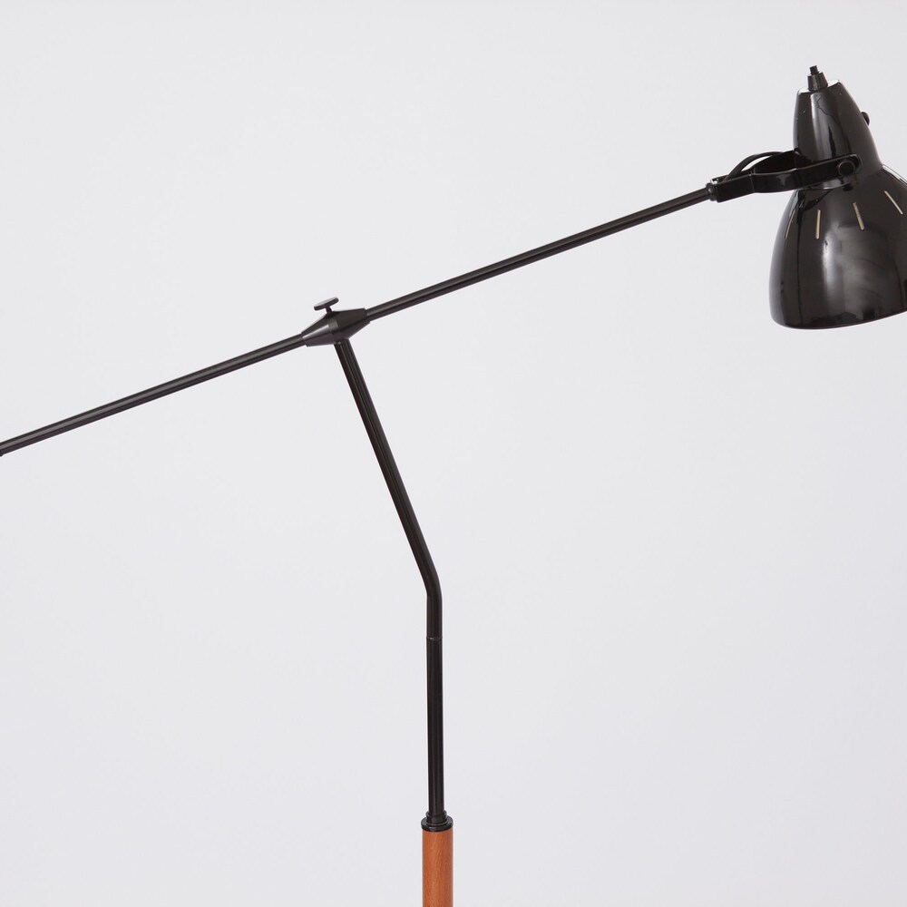 Vintage 1960s-1970s Floor Lamp | Teak Wood & Black Metal, Excellent Condition