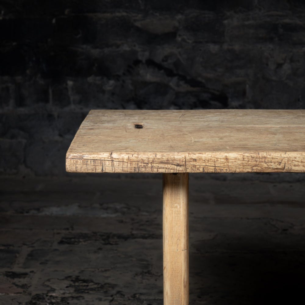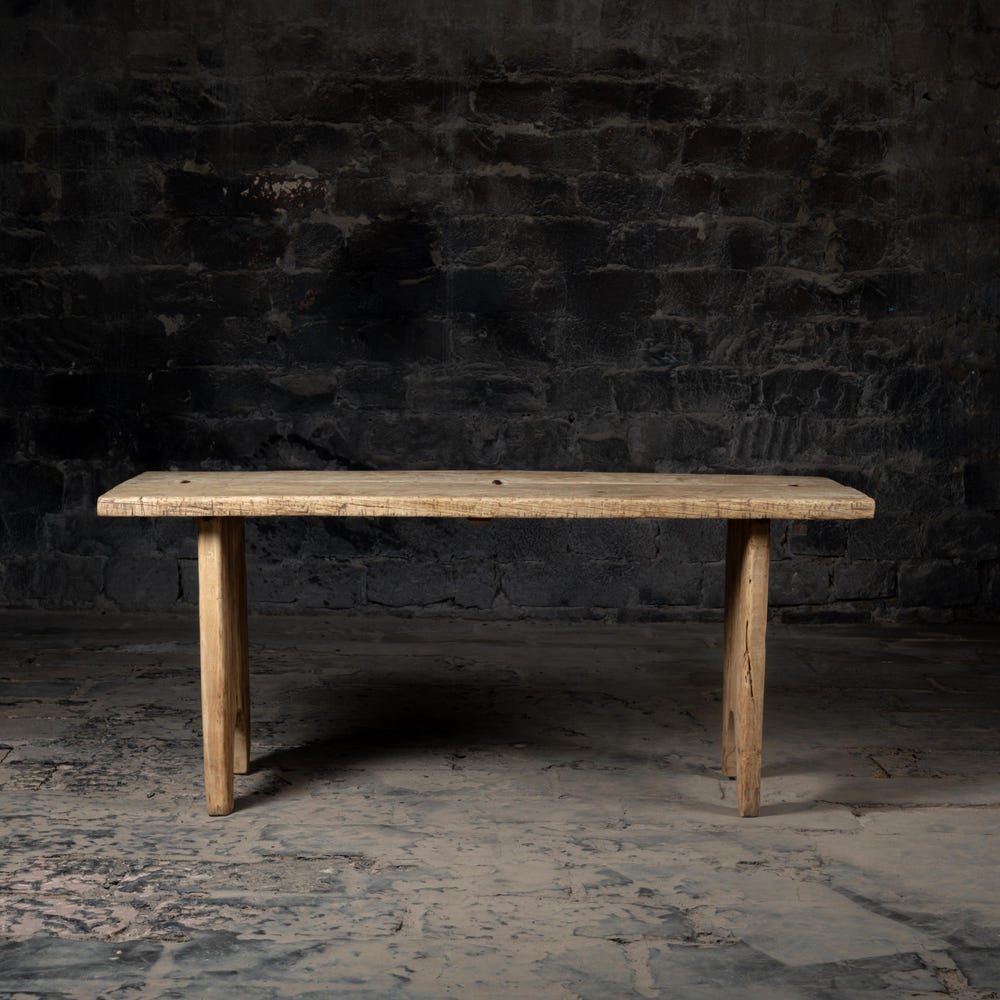 Vintage Arc Style Dining Table | Reclaimed Solid wood Kitchen Dining Table | Weathered Wood Outdoor Garden Table | Rustic Bleach Finish.