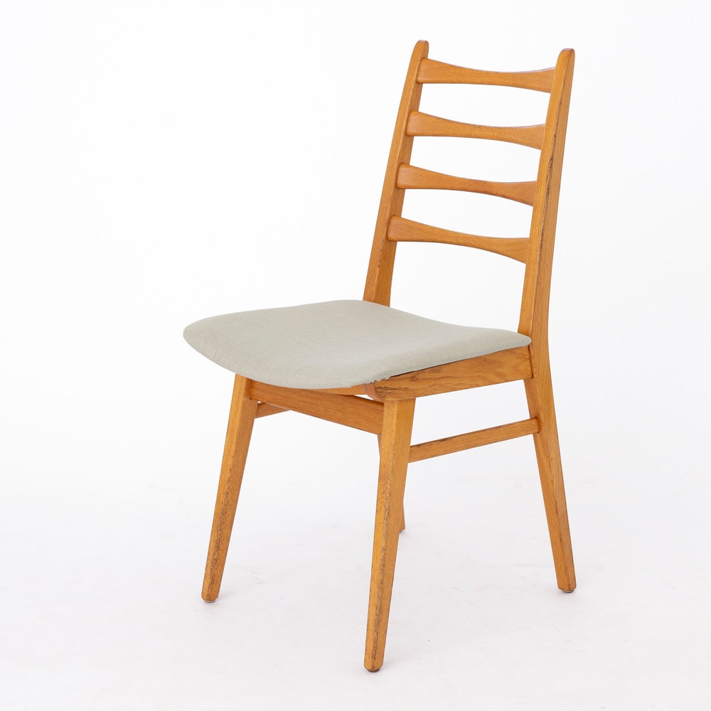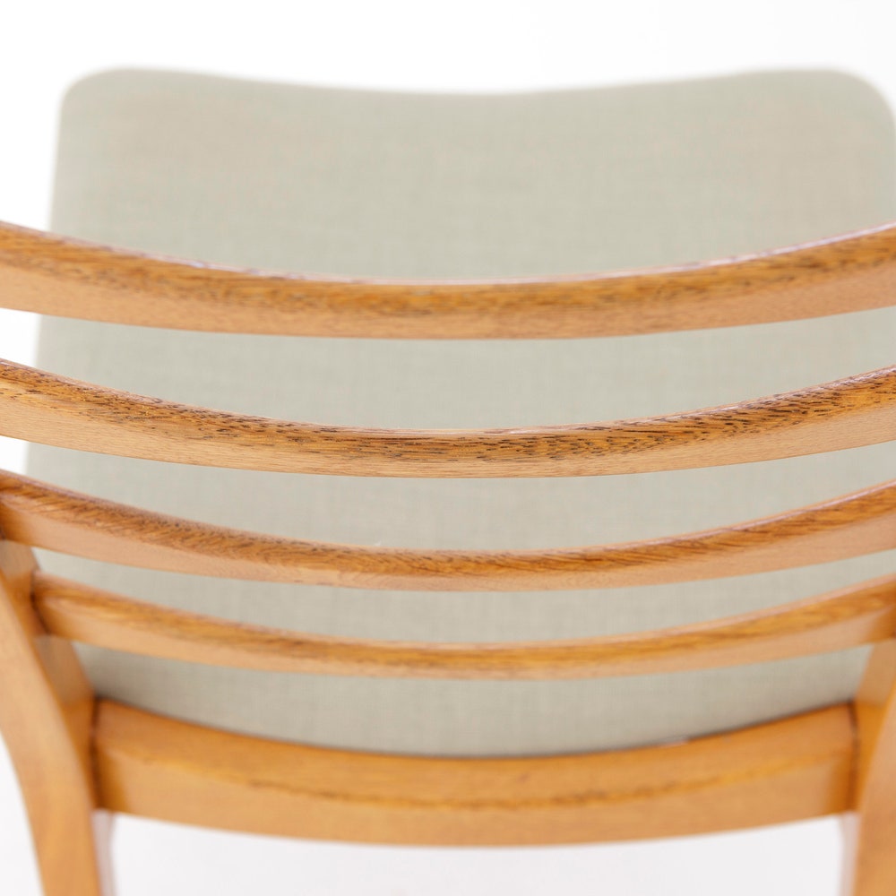 Today, they’ve been expertly reupholstered in a vibrant light green textile cover, breathing new life into their classic beech wood frames. The result is a perfect blend of nostalgic charm and contemporary style.