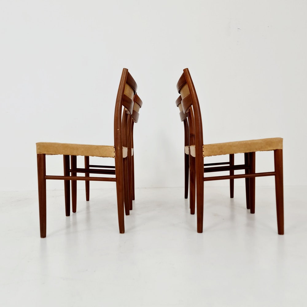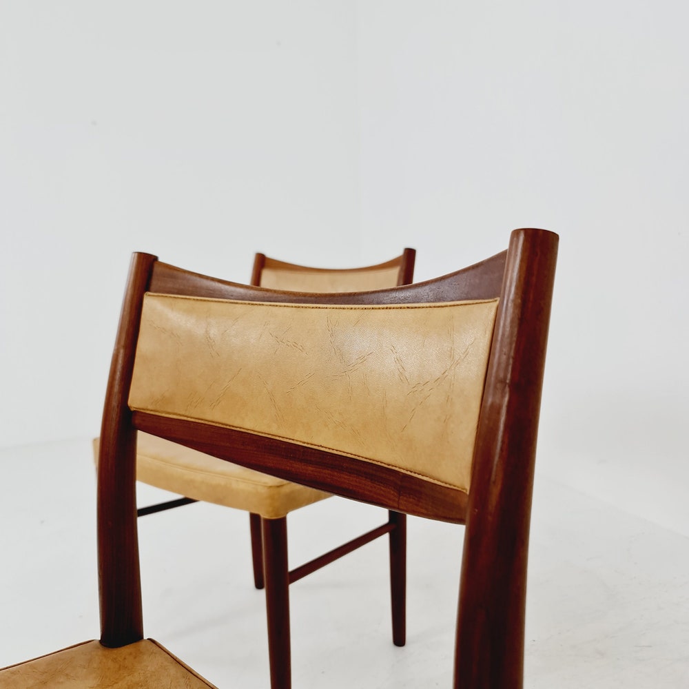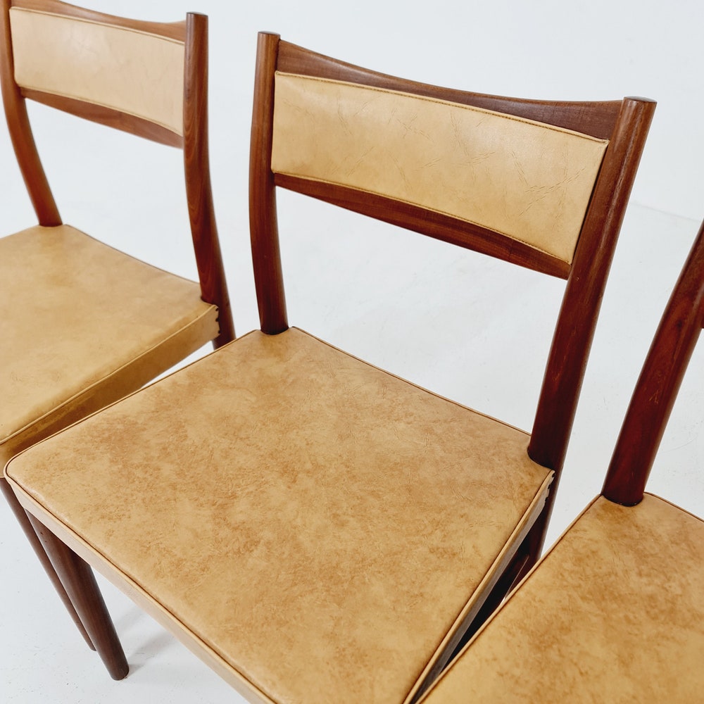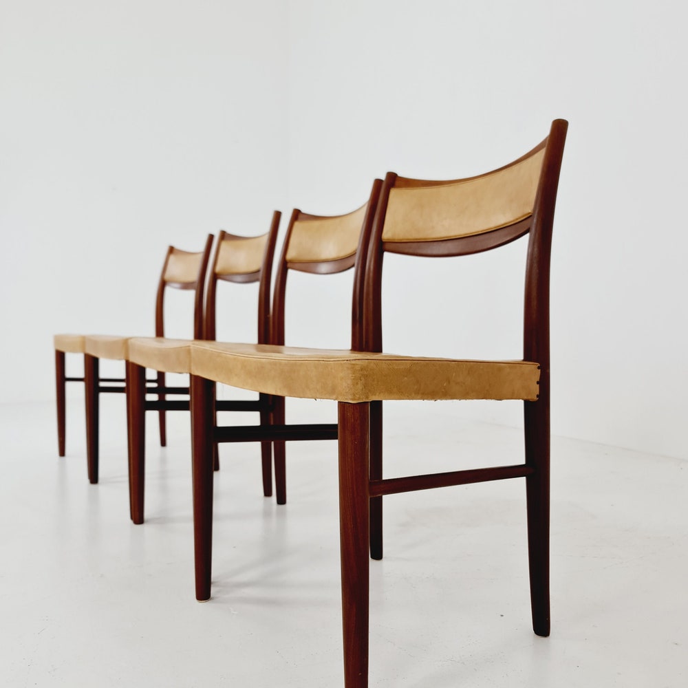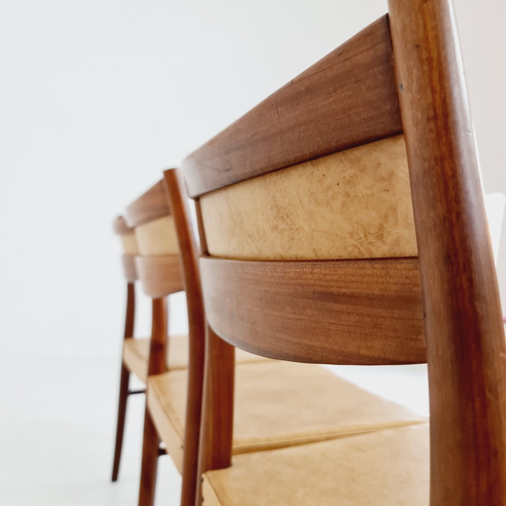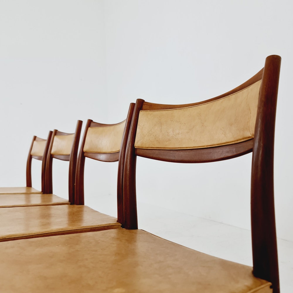 The chair frames are made from solid teak and seats is made of leather, in good vintage condition, however, as with all vintage items some minor wear marks should be expected.
