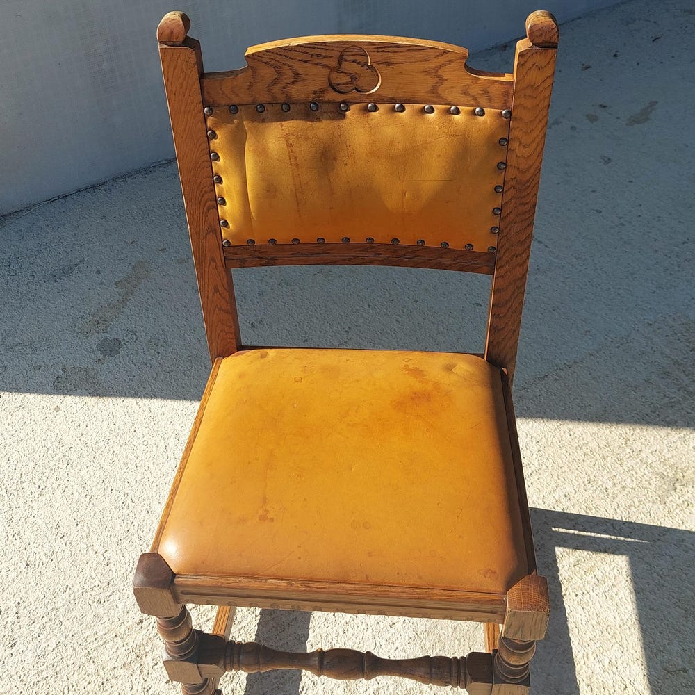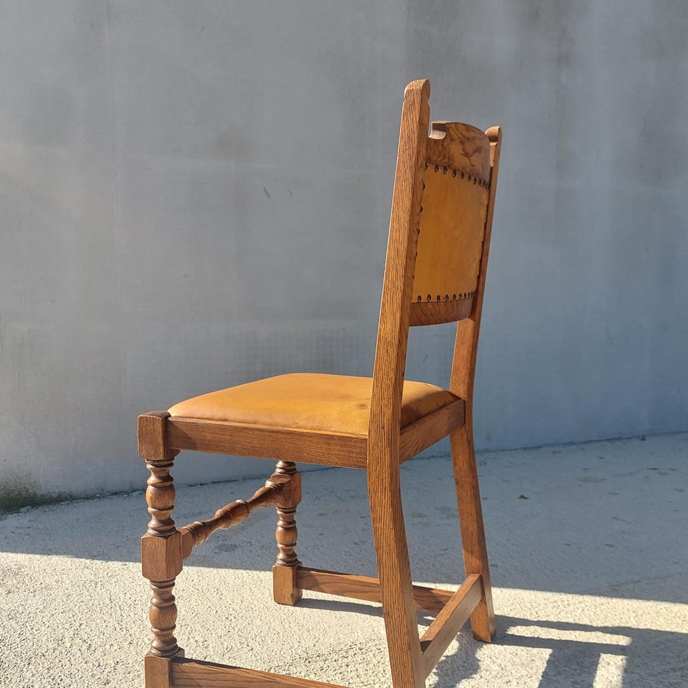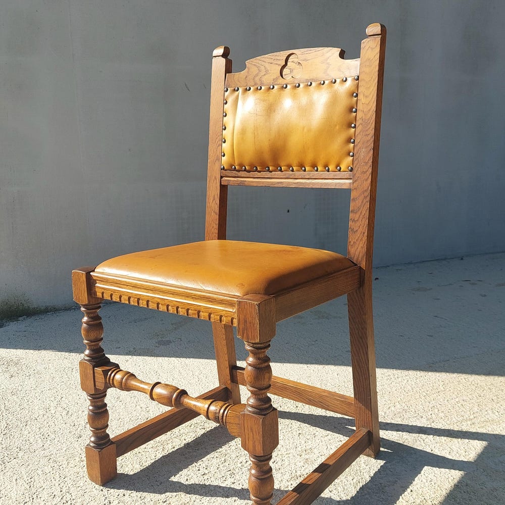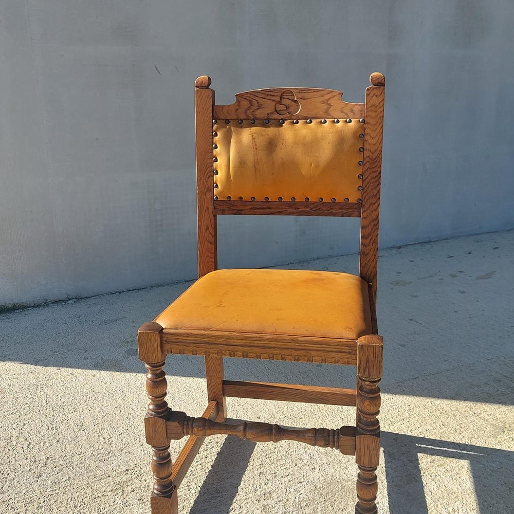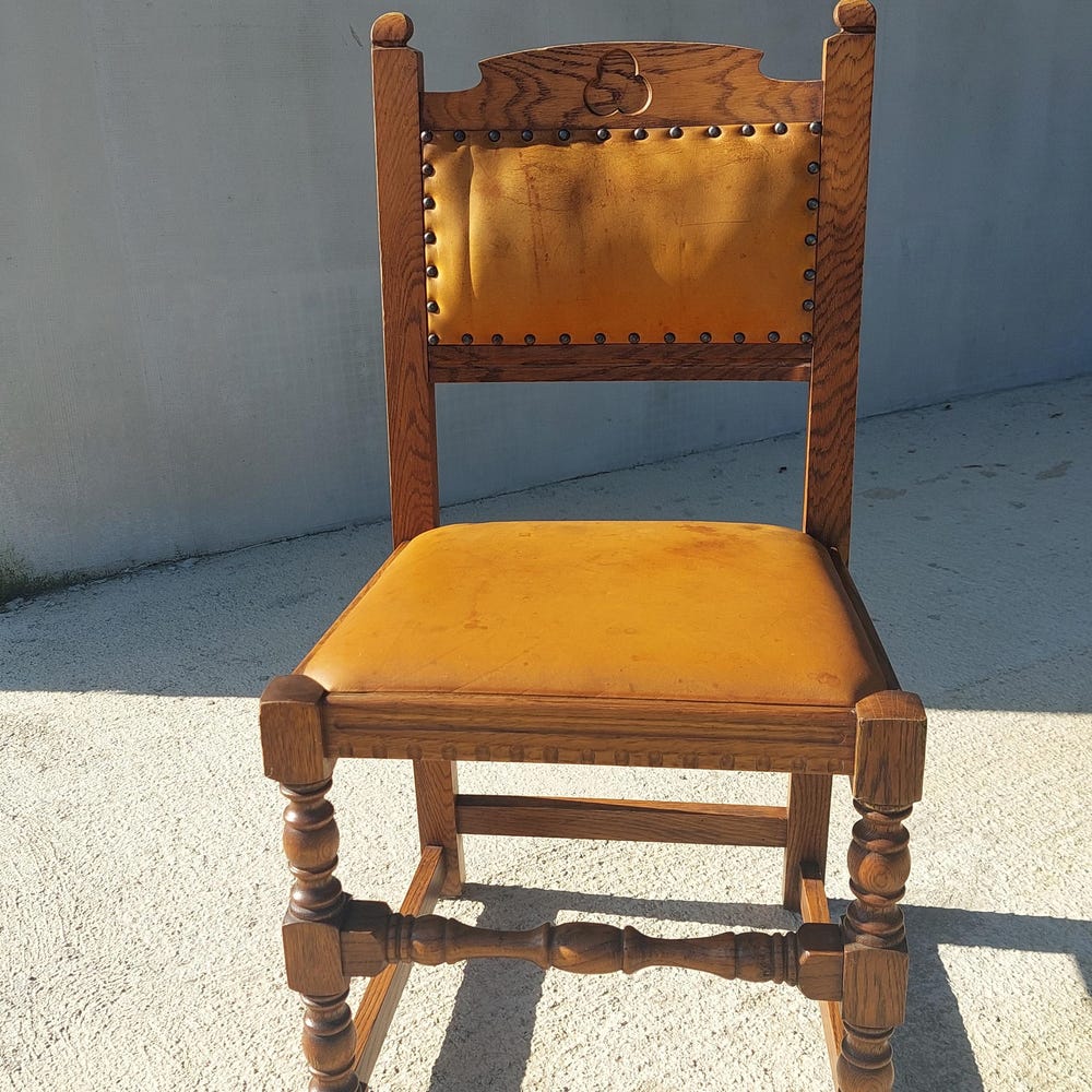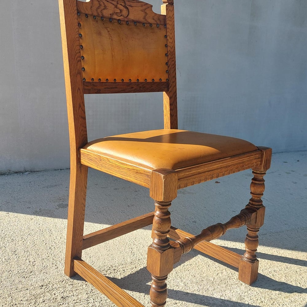 Vintage Dining Chair / Rustic Dining Chair/ Vintage Cottage Chair/ Massive and Leather Chair/ Retro Chair/ MCM Chair/ Rustic Design/70’s