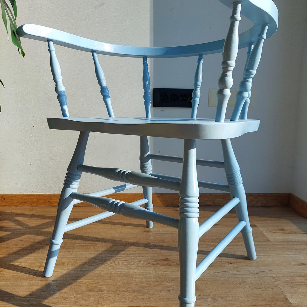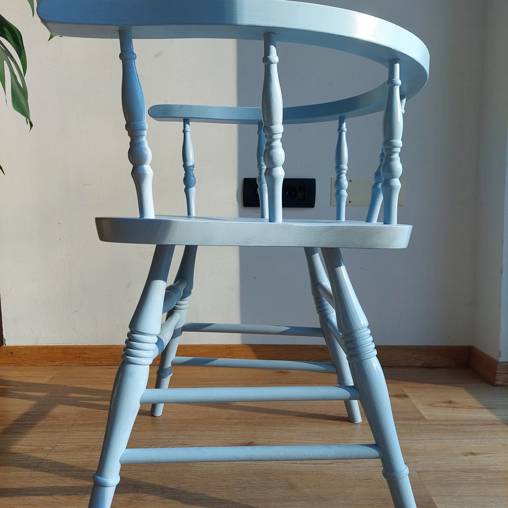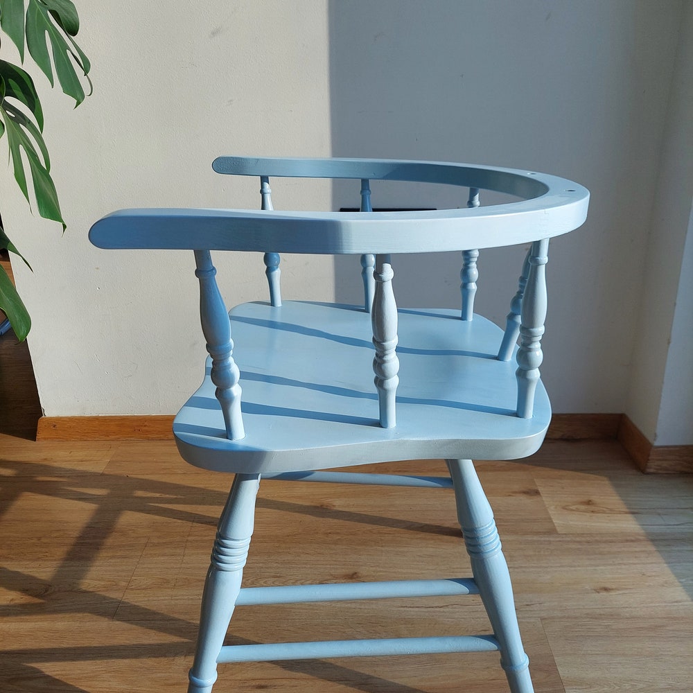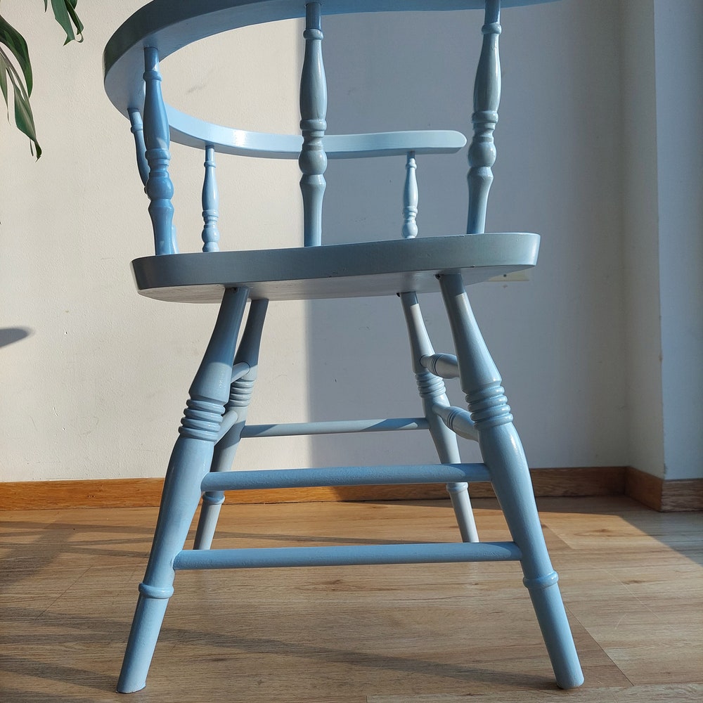 This chair was completely overheaded and painted in a gentle baby blue color!