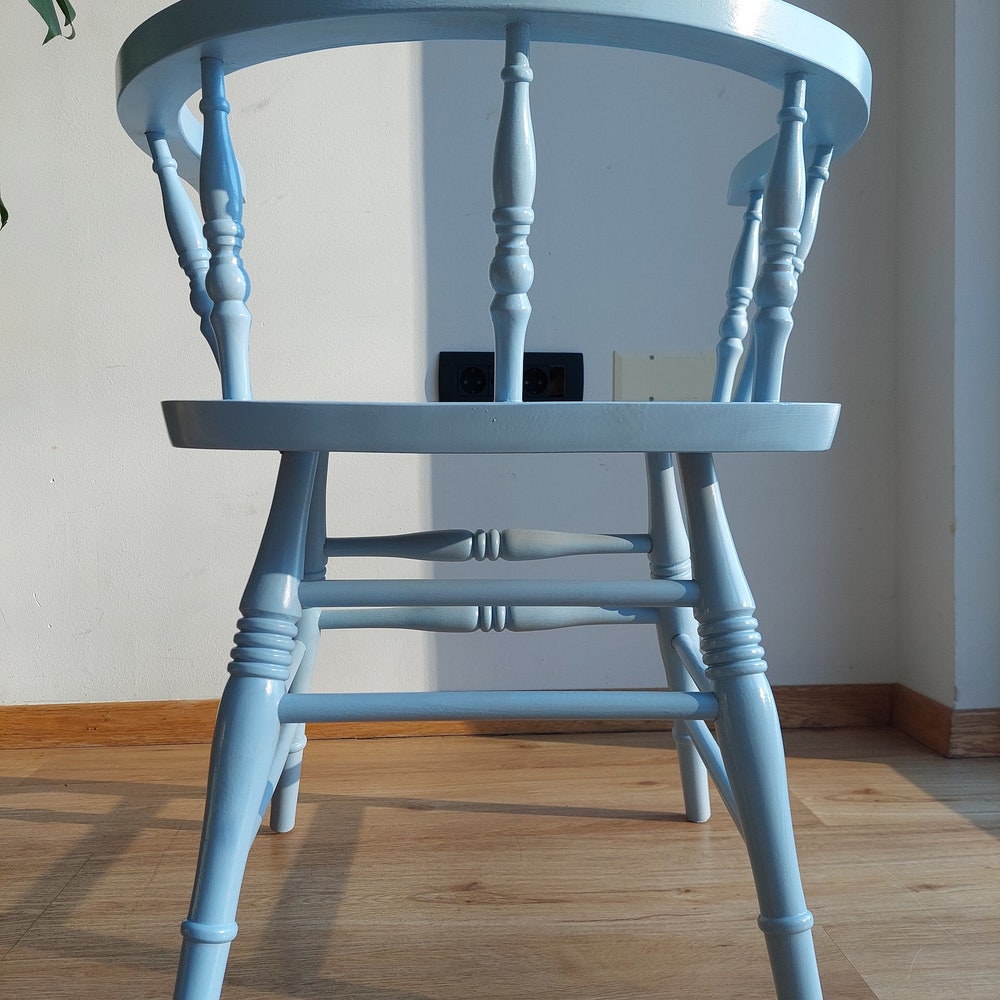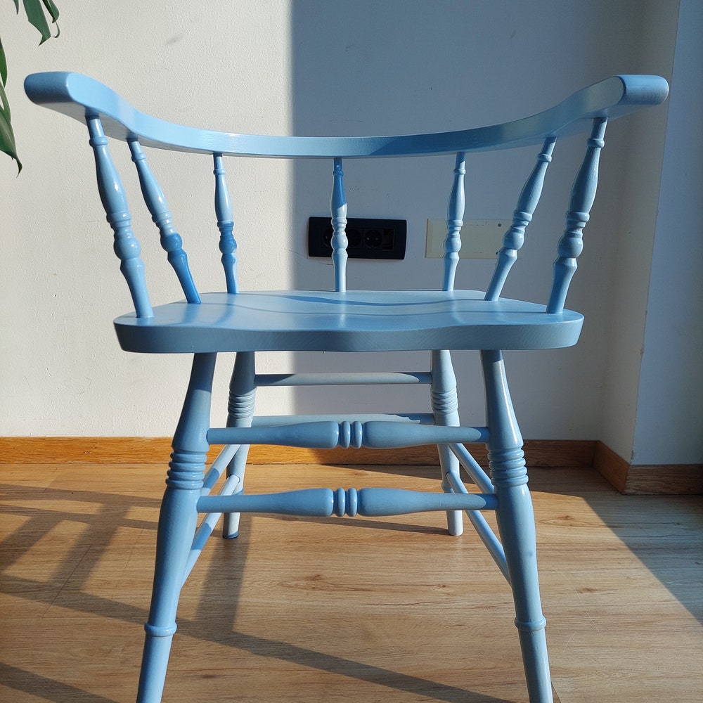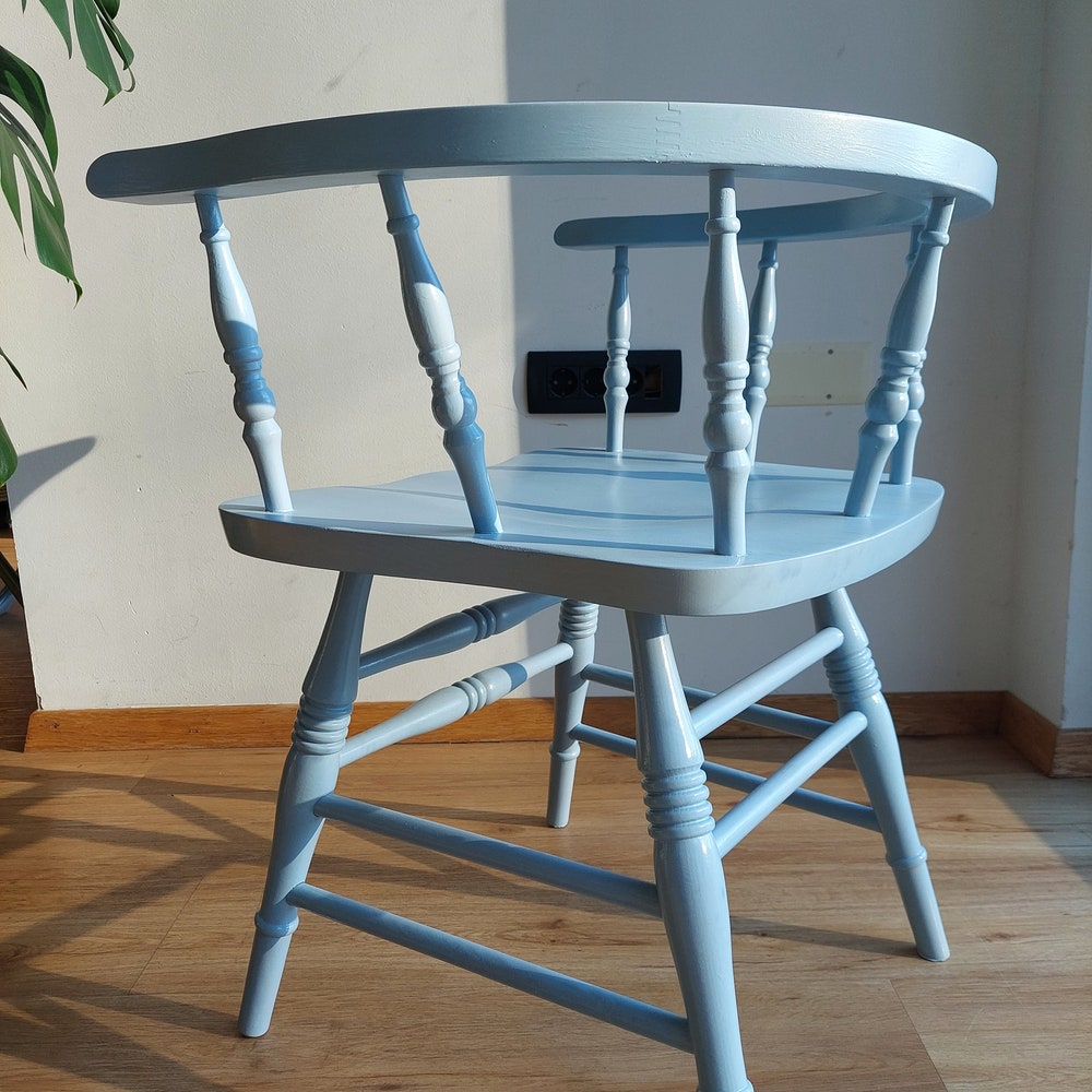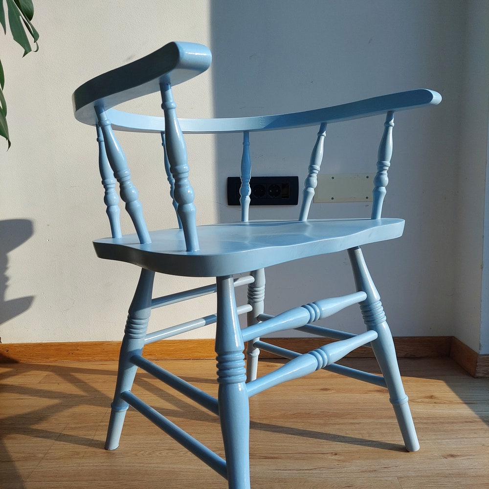This chair was completely overheaded and painted in a gentle baby blue color!