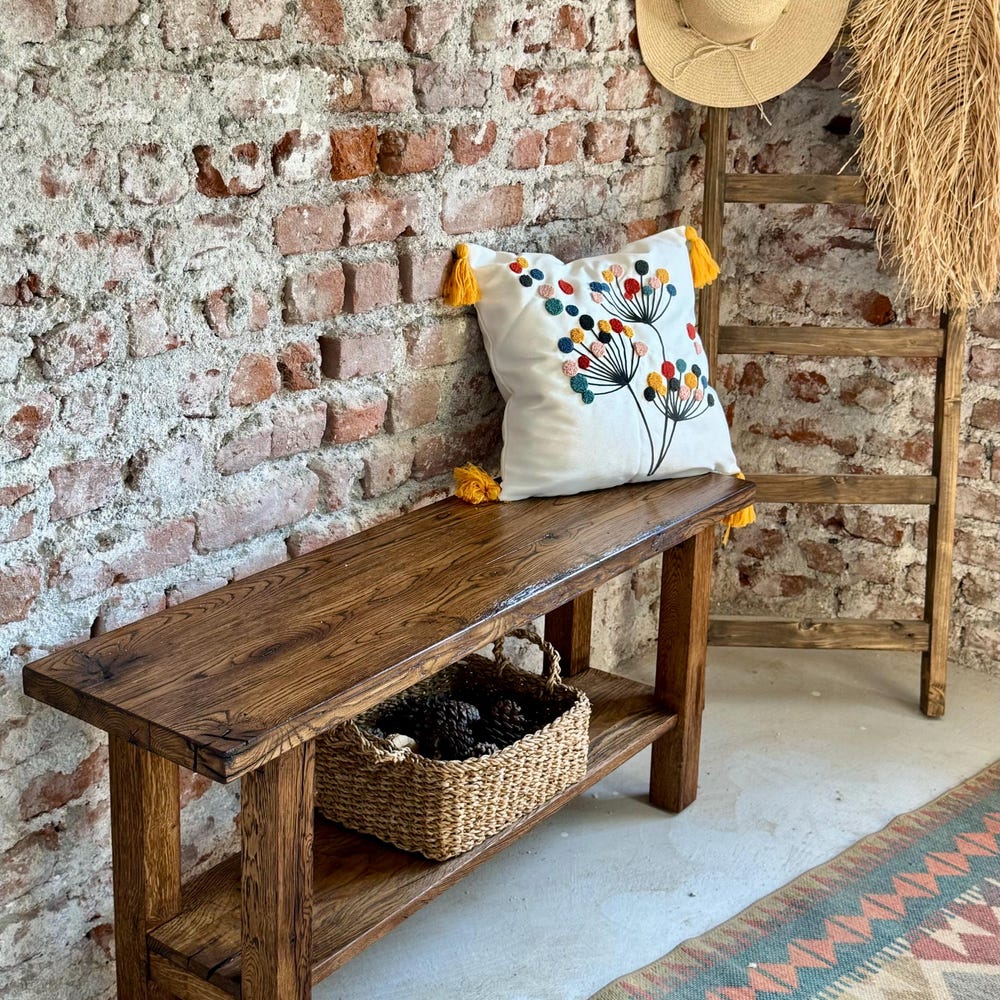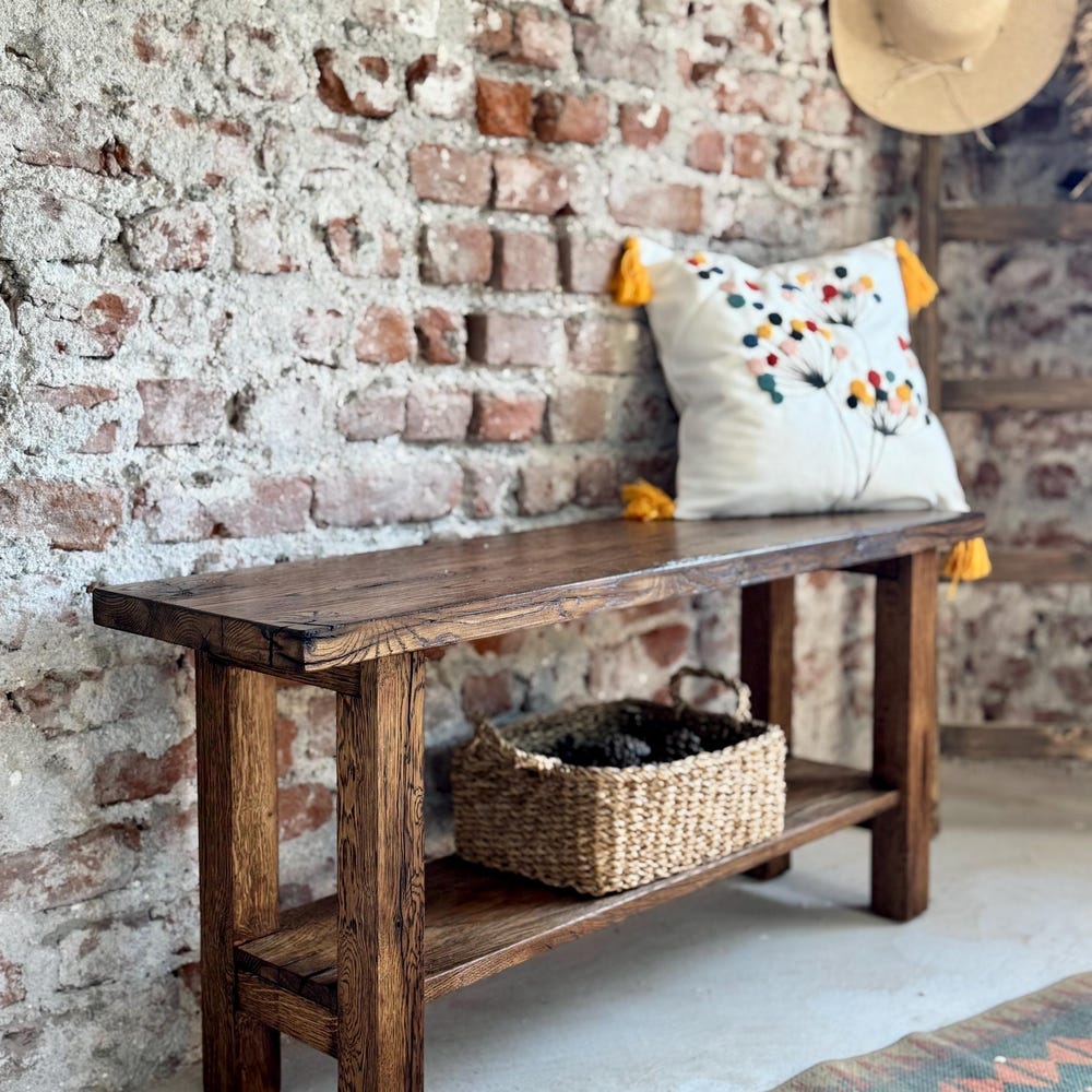 Vintage Handmade Reclaimed Wood Entry Bench with Storage for Hallway Furniture