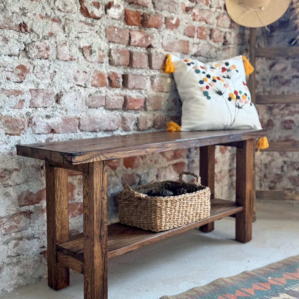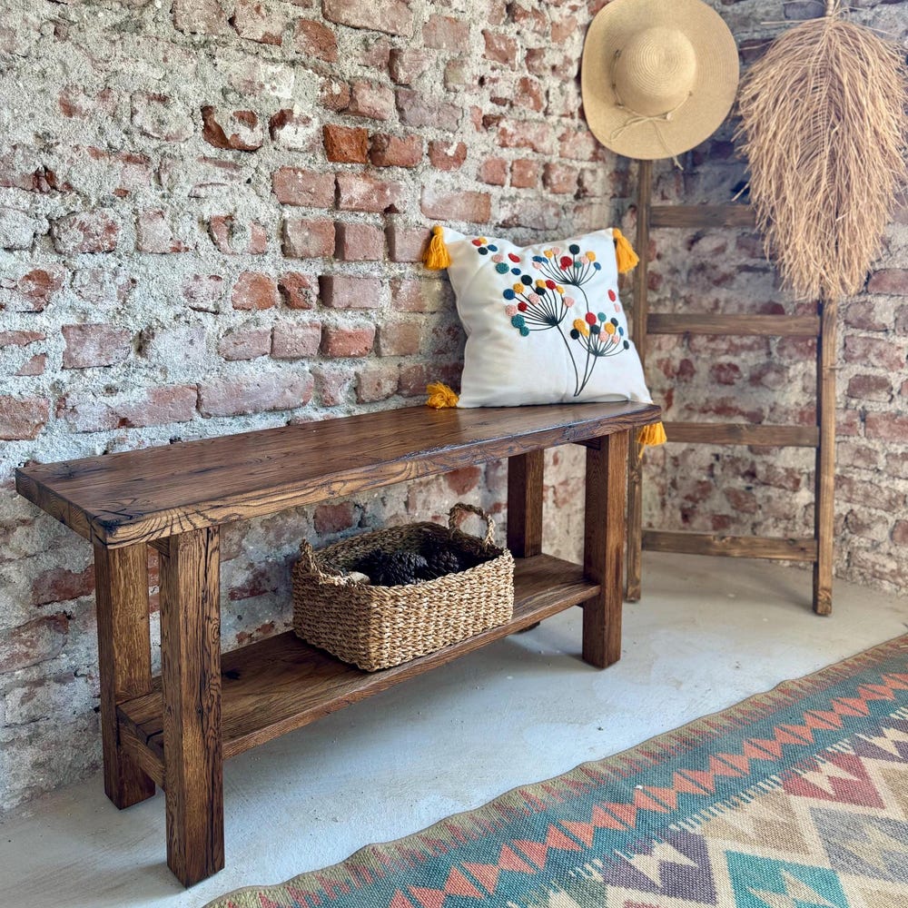Vintage Handmade Reclaimed Wood Entry Bench with Storage for Hallway Furniture…