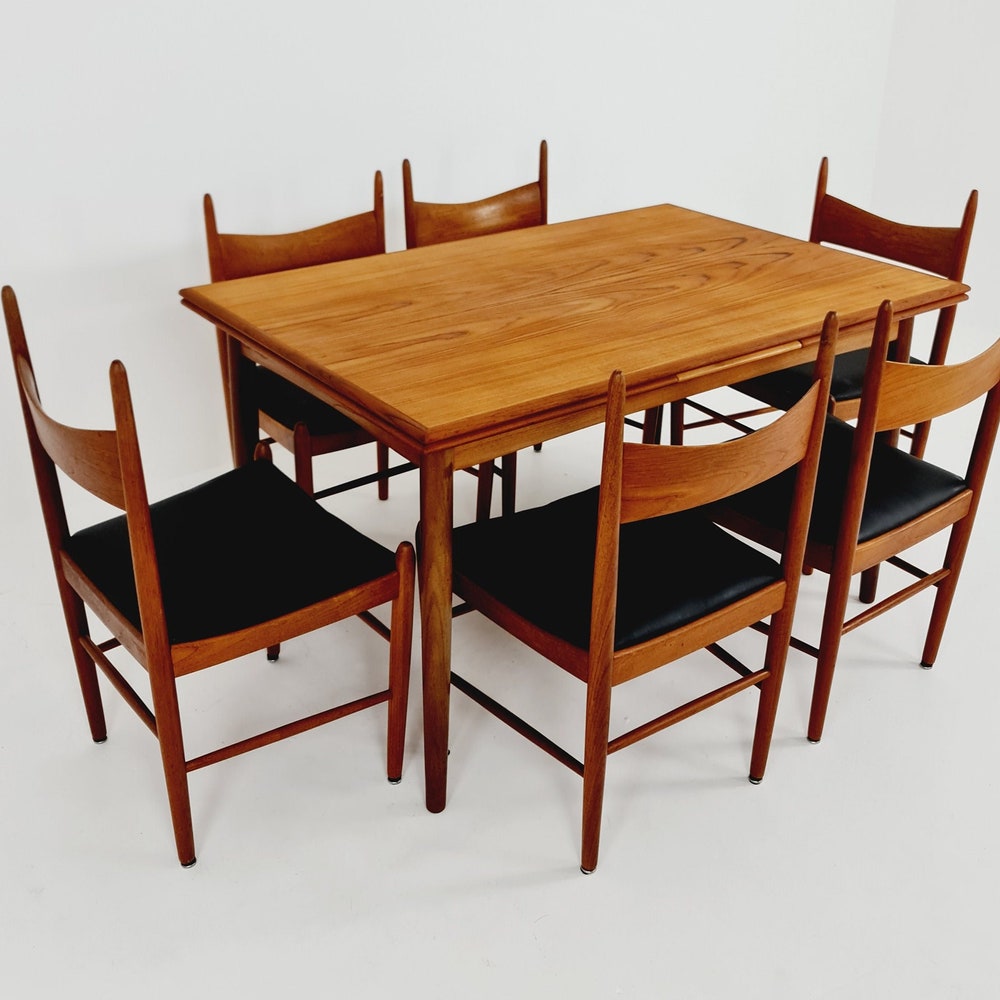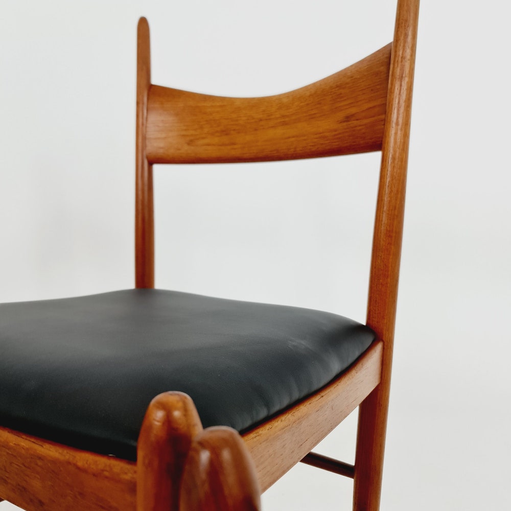 Vintage Mid Century teak dining chairs By H. vestervig Eriksen for Brdr. Trombrg 1960s, Set of 6 Made in Denmark The chair frames are made from solid teak, and leather in very good condition Designer / Manufacturer: H. vestervig Eriksen for Brdr. Trombrg Worldwide shipping available. Dimensions: Width: 53cmHeight: 88cmSeat Depth: 44cmSeat height: 44 cm […]