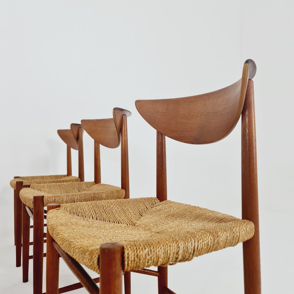 Vintage Teak Dining Chairs By Peter Hvidt & Orla Molgaard-Nielsen, 1960s, Set of 6 Made in Denmark The chair frames are made from solid teak, and Danish Cord in good vintage condition, however, as with all vintage items some minor wear marks should be expected. Designer / Manufacturer: Peter Hvidt & Orla Molgaard-Nielsen for Soborg […]