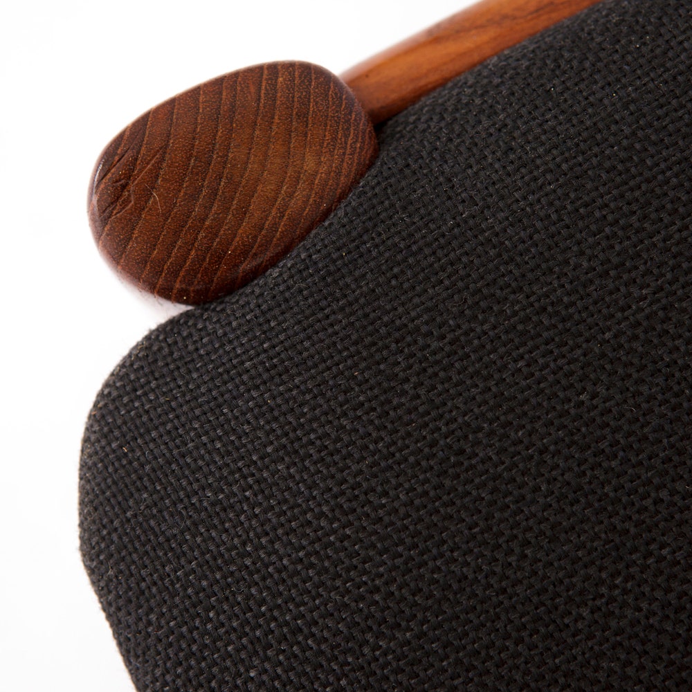 Upholstery: Recently reupholstered with a sleek black textile, adding a modern touch to the classic design.