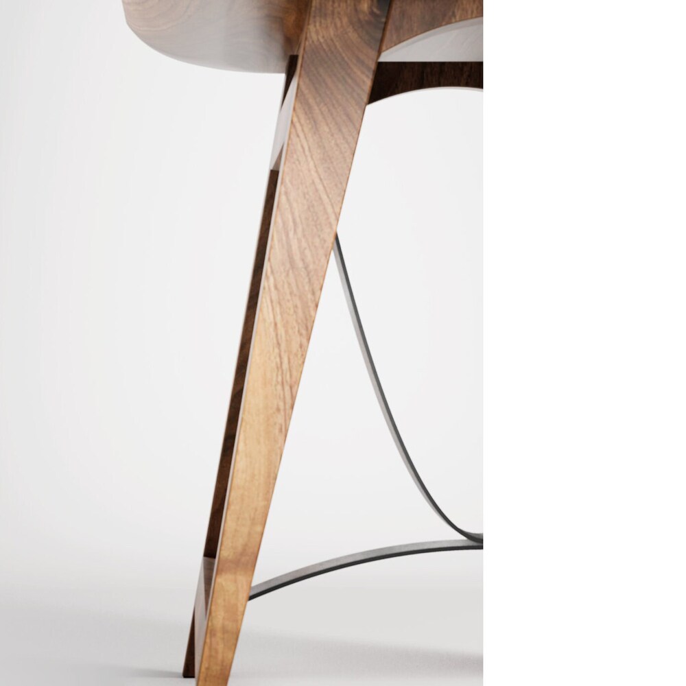 This mid-century modern nightstand is fabricated in solid American walnut and steel. We offer two sizes: small bedside table and taller nightstands. Please find the dimensions in the detailed plans.