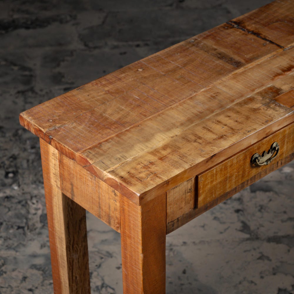 This Reclaimed Solid wood Console table is handcrafted from years old reclaimed wood planks which are sourced from different parts of india. years of naturally aged wood has been used in making these beautiful Console tables for you. Each piece has its own uniqueness in terms of wood color , old screw & knot holes, scratches, cracks , natural Raw texture line. This is what makes every piece one of kind.