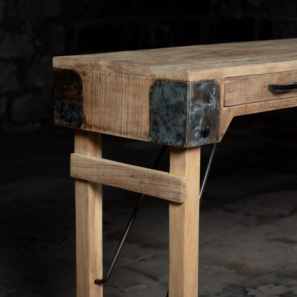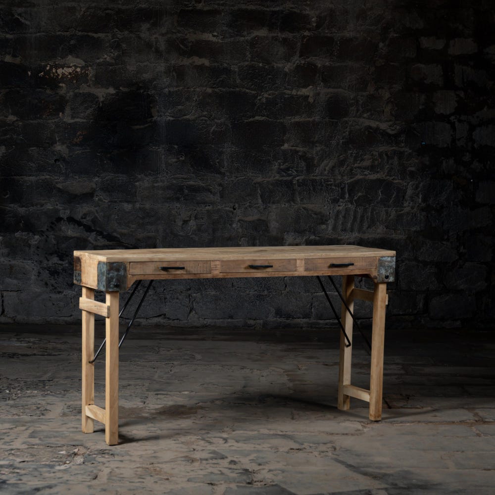 Vintage Reclaimed wood drawer console table | Wooden entryway console | Handcrafted folding console table | Rustic vintage finish