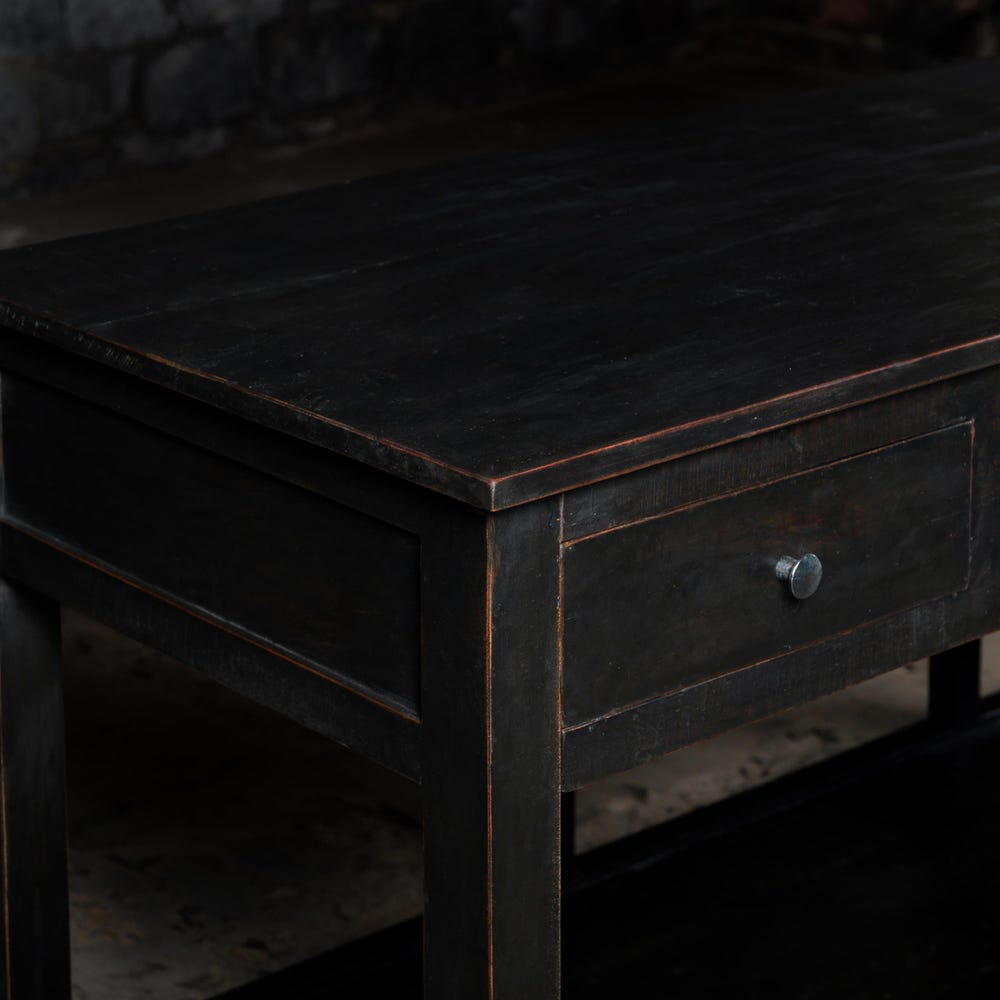 This vintage reclaimed wood kitchen counter table adds rustic charm to any space. With built-in drawers for practical storage, it’s perfect for kitchens, and dining rooms, or as a stylish addition to your home decor. The reclaimed wood ensures a unique look with natural imperfections, combining functionality and style.