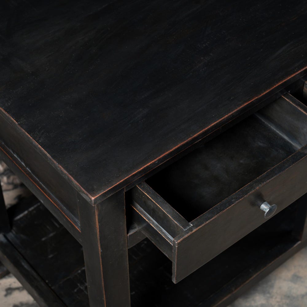 Equipped with multiple drawers, this table offers convenient storage for utensils, linens, and kitchen essentials.
