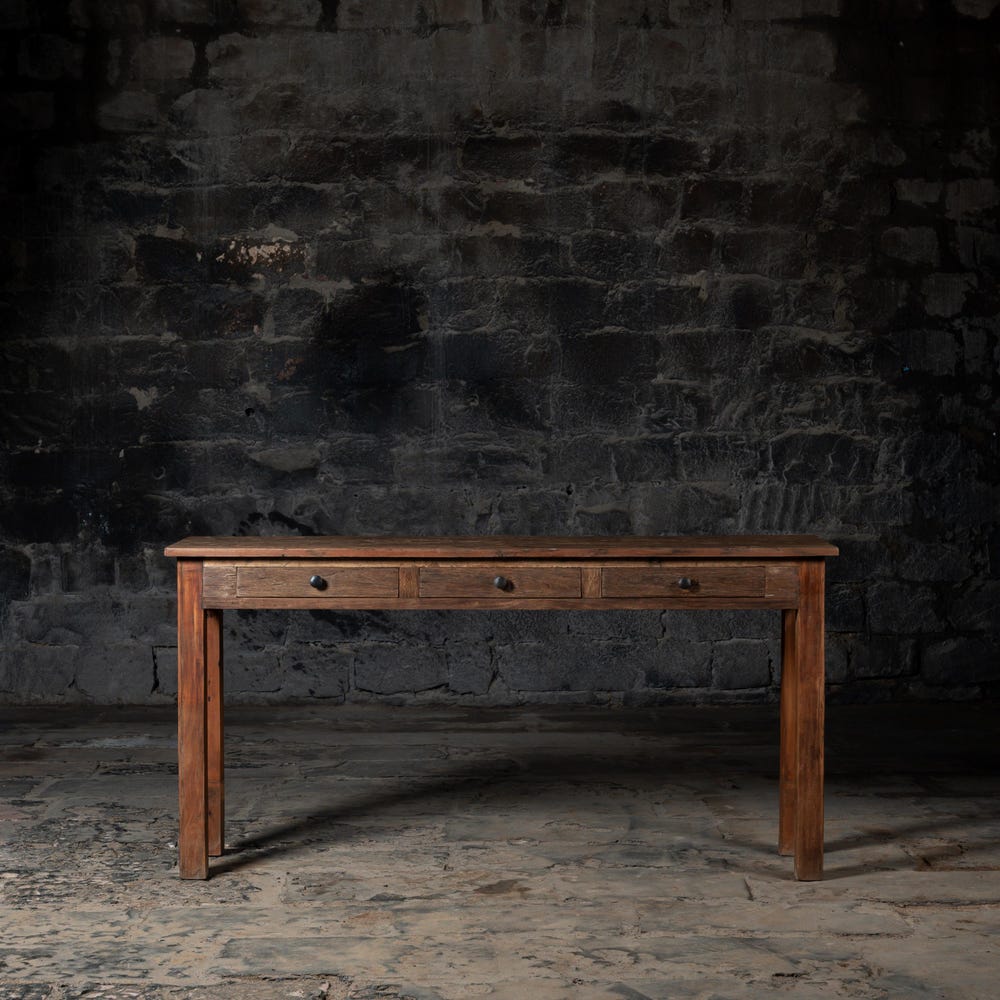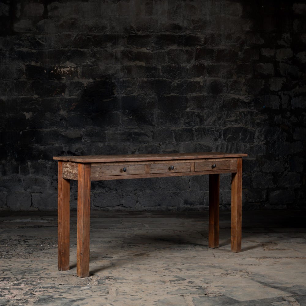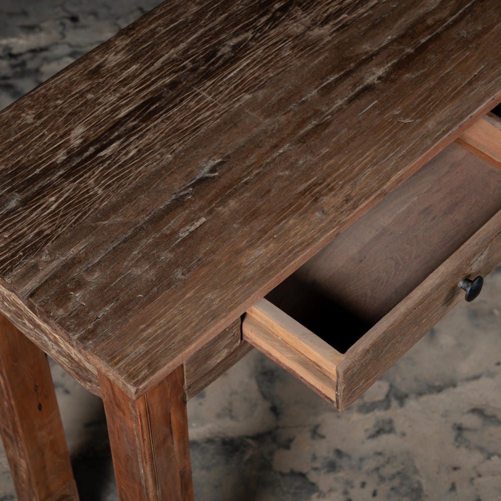 This Reclaimed weathered wood Console table is handcrafted from years old reclaimed wood planks which are sourced from different parts of india. years of naturally aged wood has been used in making these beautiful Console tables for you. Each piece has its own uniqueness in terms of wood color , old screw & knot holes, scratches, cracks , natural Raw texture line. This is what makes every piece one of kind.