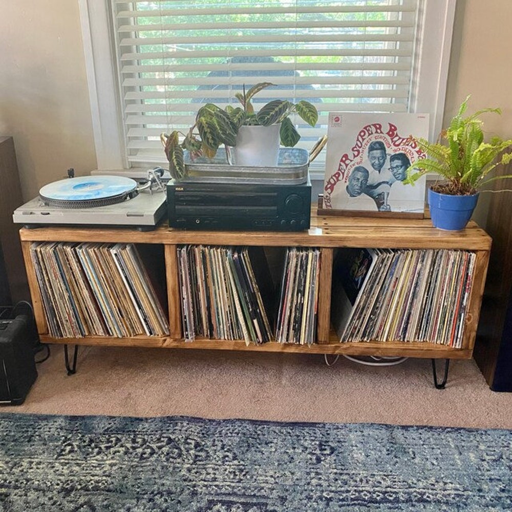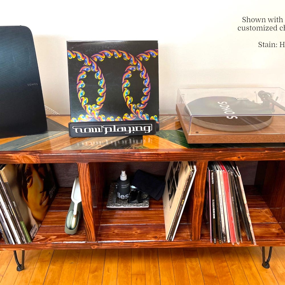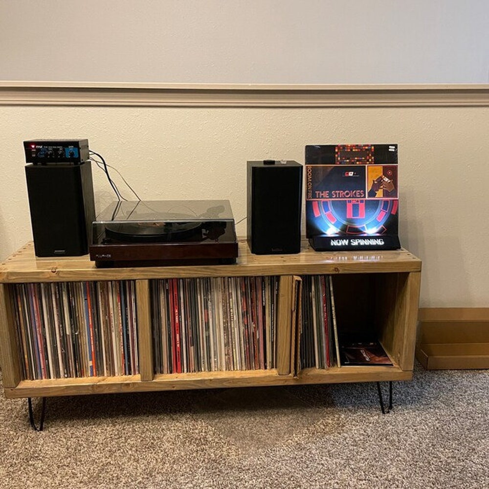 Vinyl Record Player Stand and Storage Record Player Tv Stand Lp Record Storage Sound of Vinyl Record Storage Console Record Player Handmade