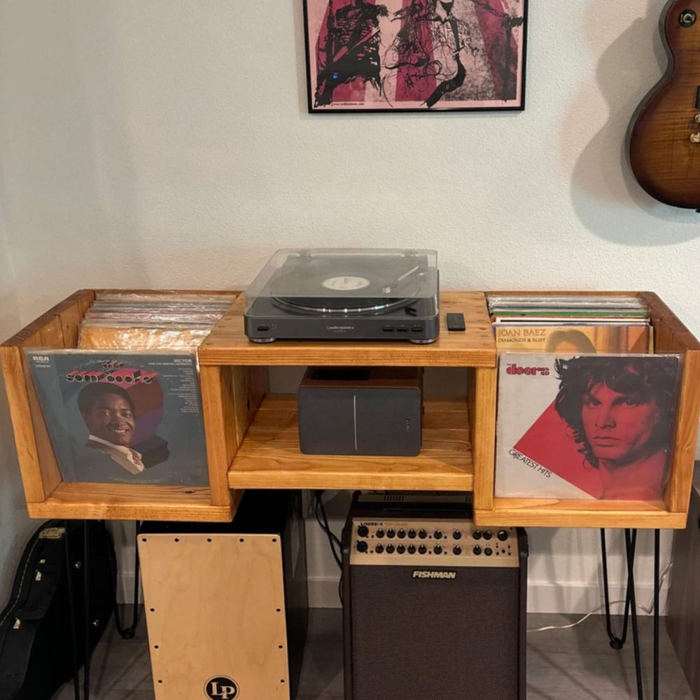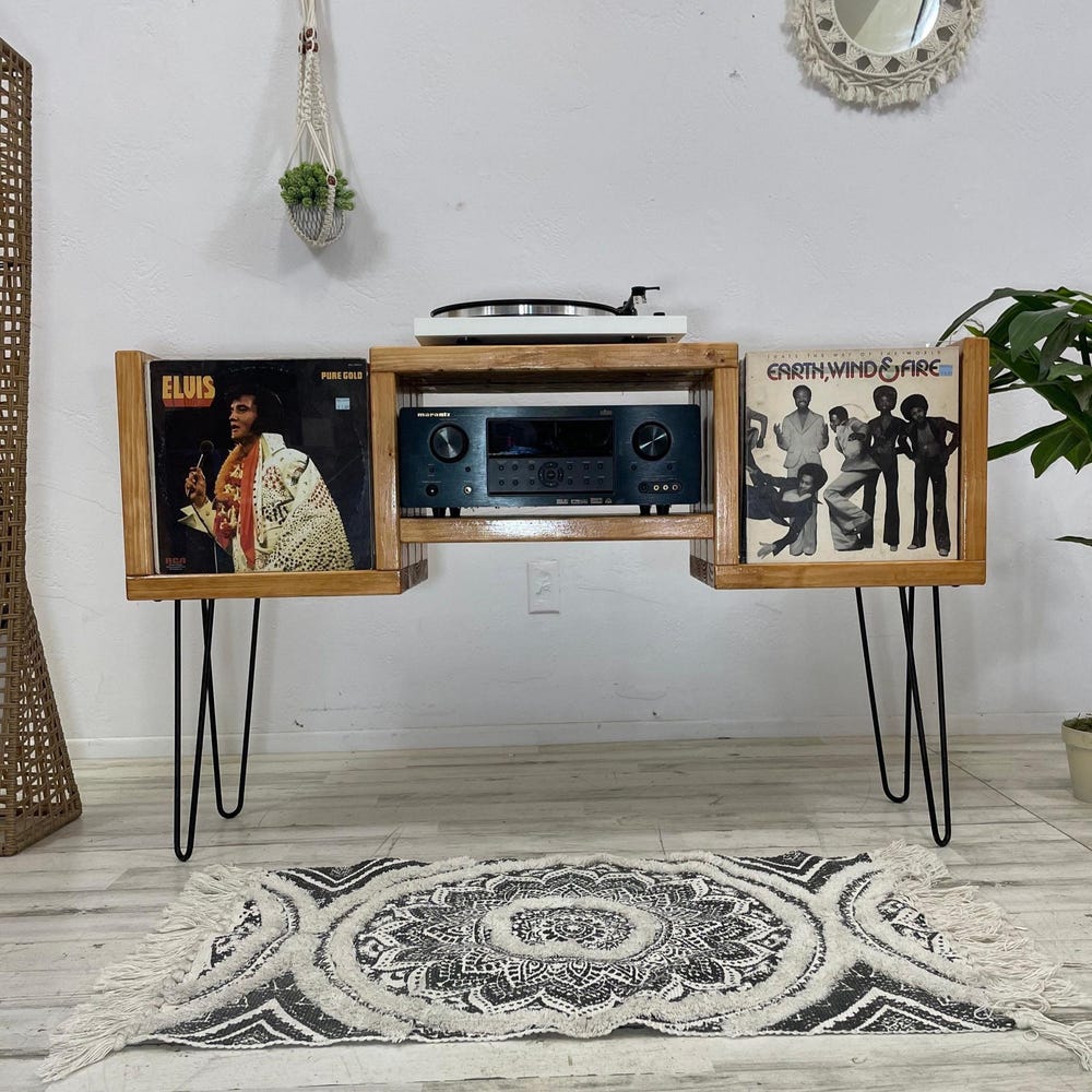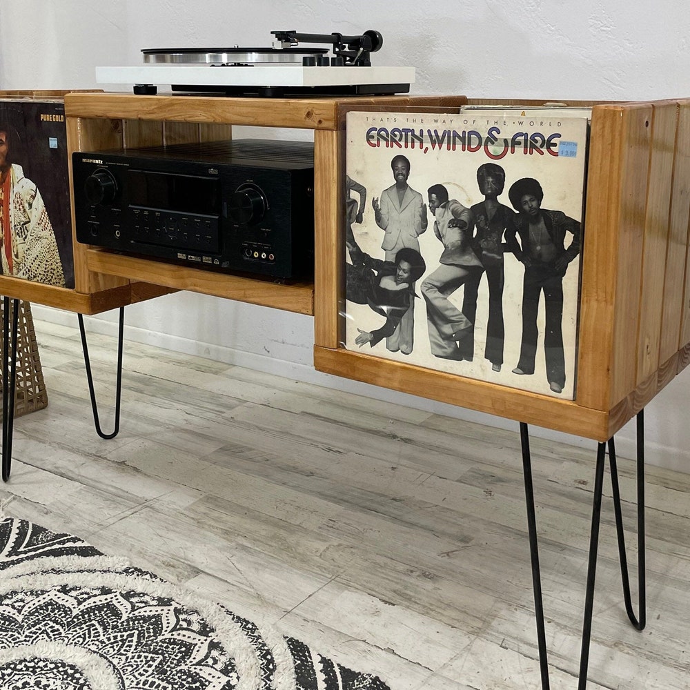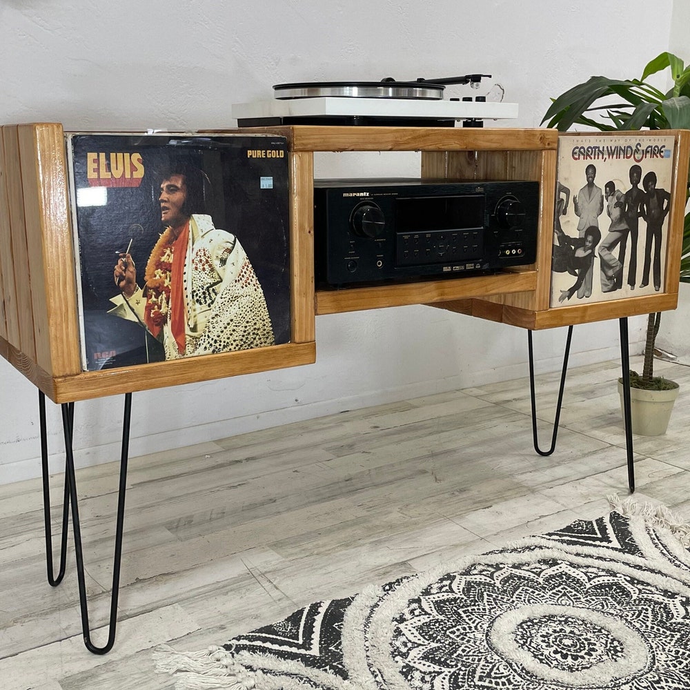 Vinyl Record Stand and Storage Wood Record Player Stand with Storage Record Console Player Amp Stand Vinyl Stand Customizable USA Handmade