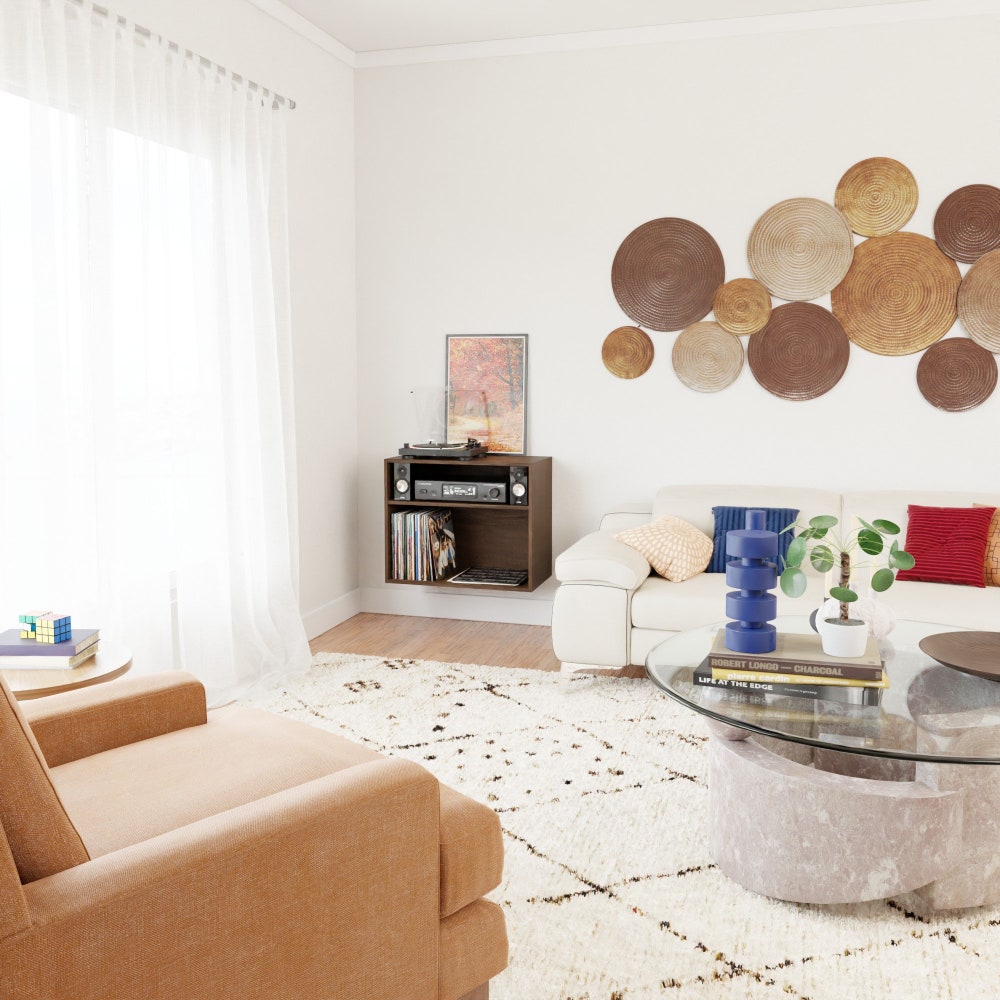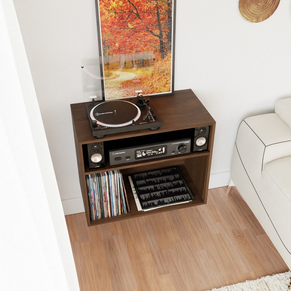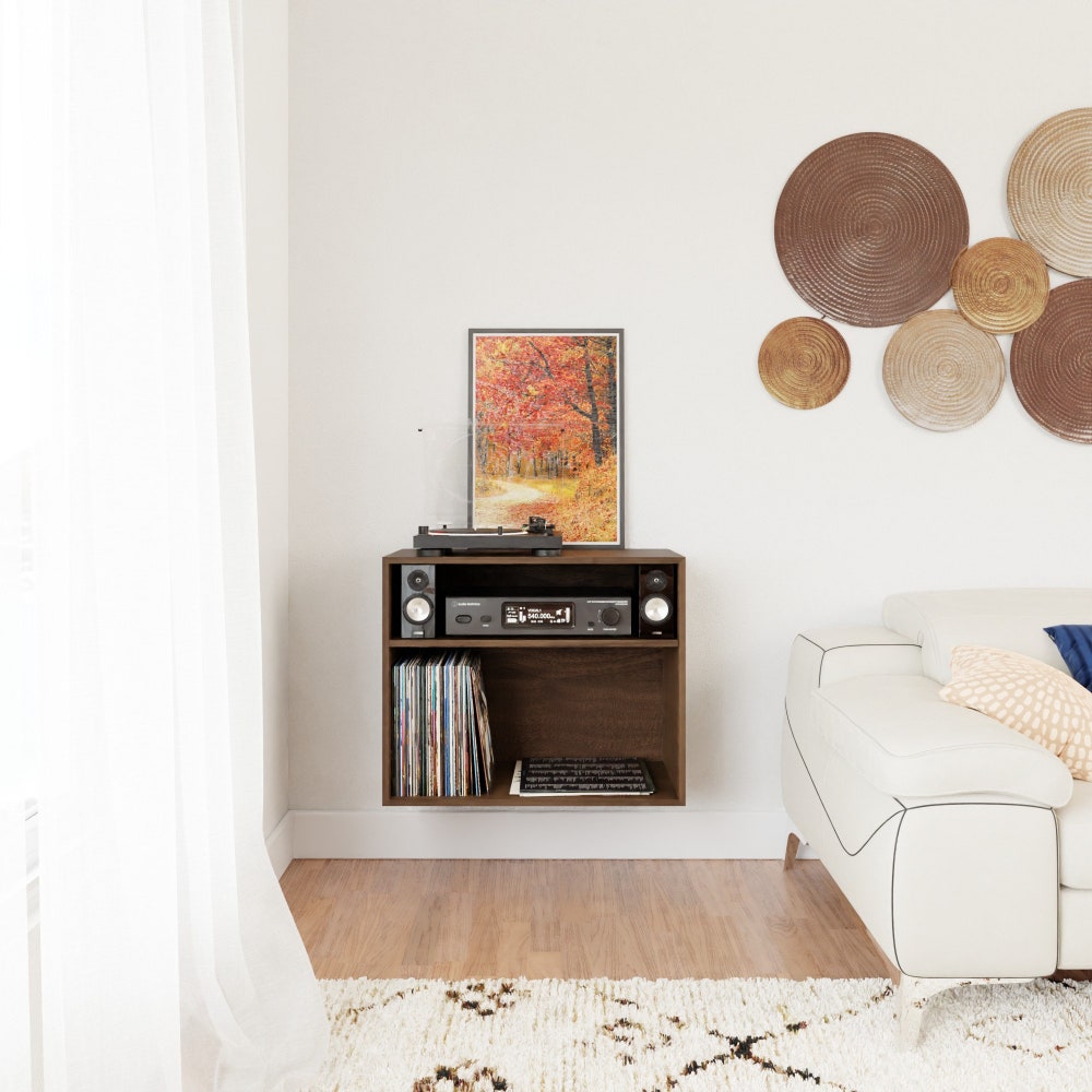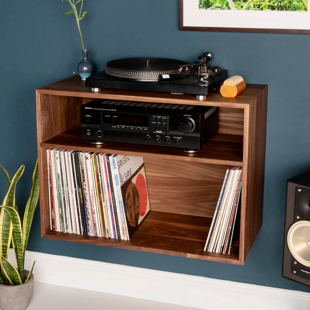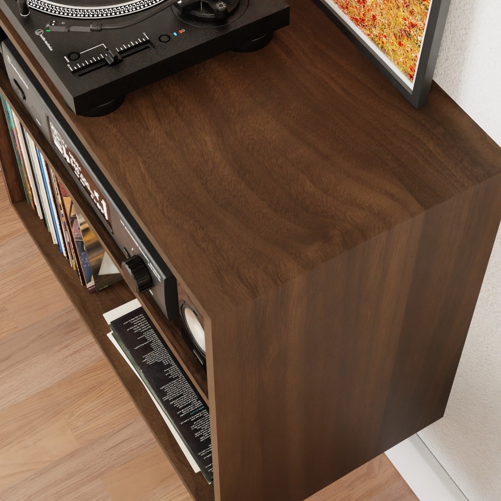 Vinyl Record Stereo Cabinet in Solid Walnut, Floating