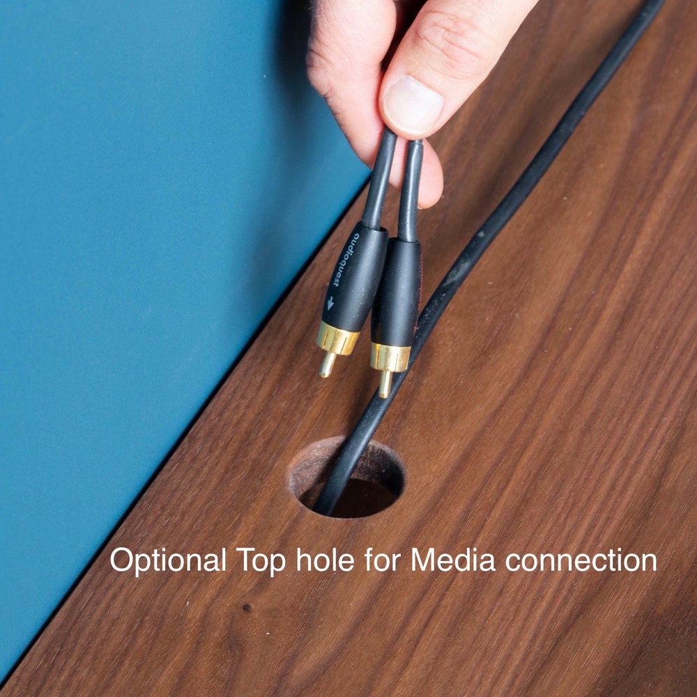 Our Stereo Console Table is Mid-Century Modern Inspired and built in solid American Black Walnut. With multiple options for concealing cords and cables, this piece will be the perfect addition to your sound system. No more cheap particle board, laminate or plywood.