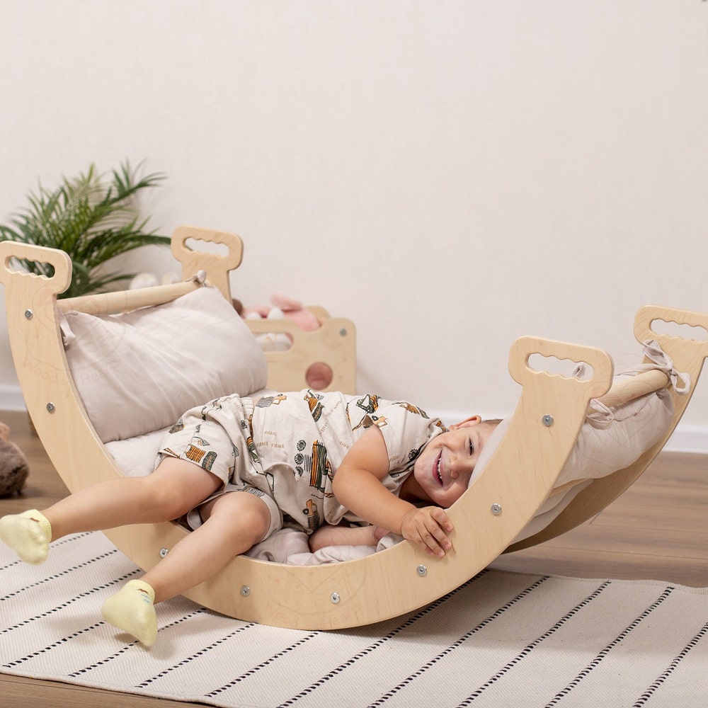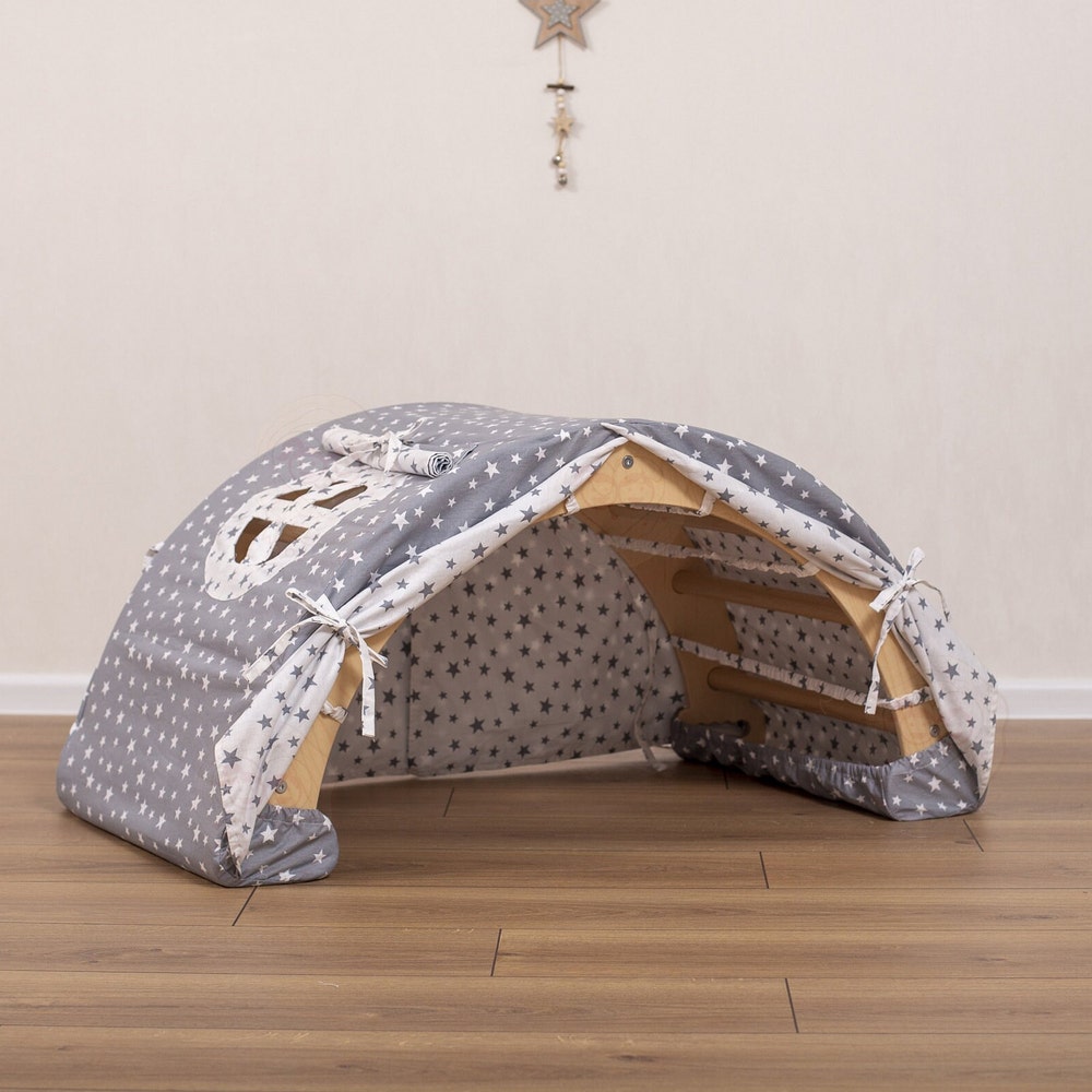 Waldorf Climbing Arch with Toddler Tent & Optional Soft Play Cushion, Handmade Furniture Montessori Rocker with Kids Tent and Playmat Pillow