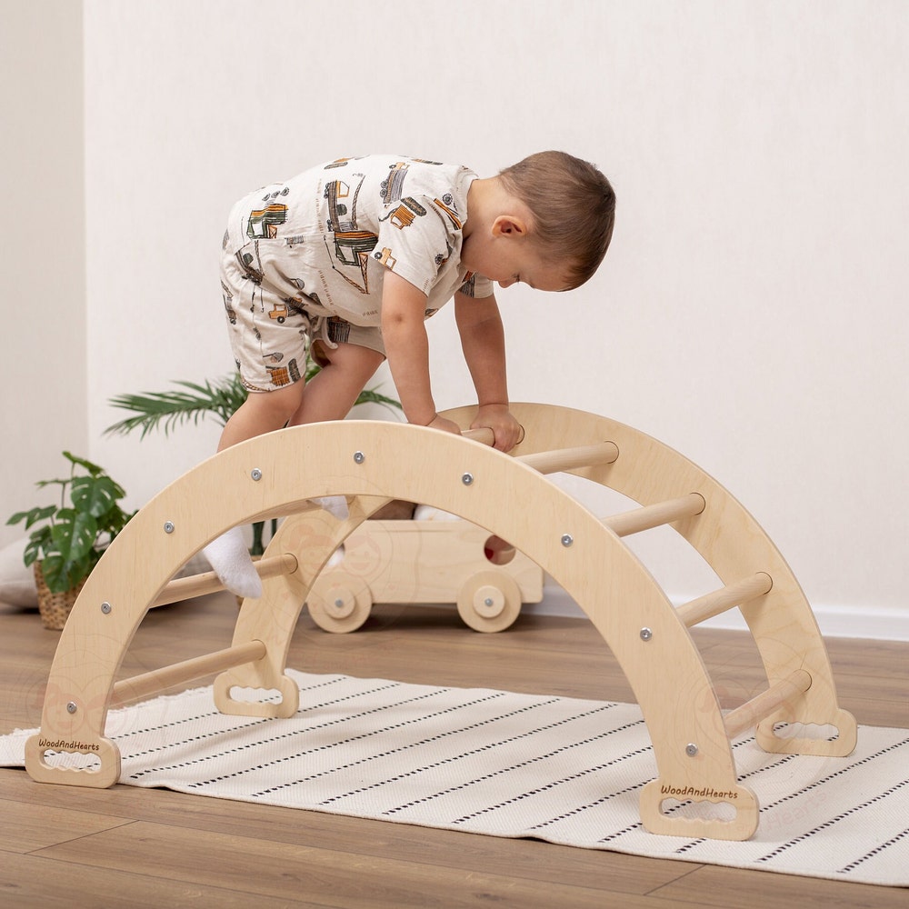 🌟 The climbing arch with a tent will be an excellent place for your child to relax and play. Woodandhearts canopy will create a fabulous and comfortable space anywhere in the house. The arch is perfect for active games and will help your baby develop their fitness and sense of balance.