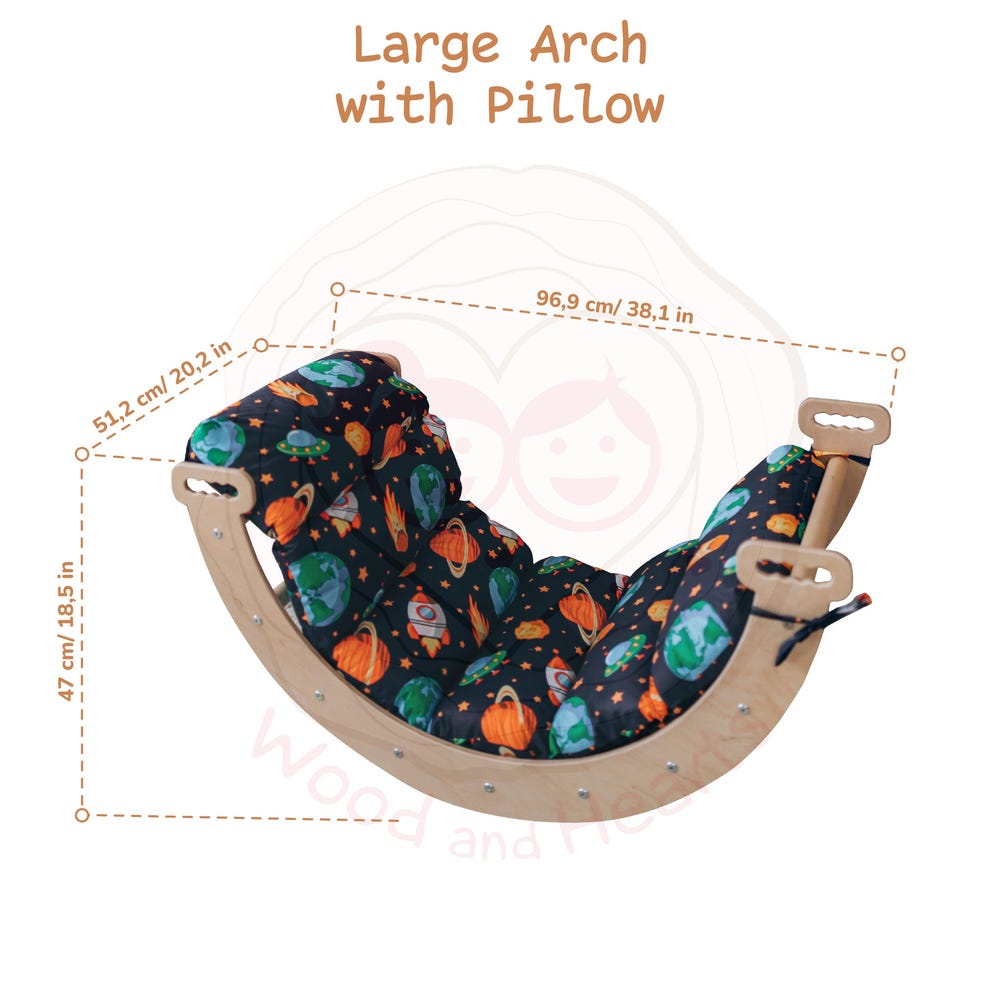🌟 The optional cozy soft Cushion will help make the arch comfortable to use as the rocker too. This set is suitable for active play, rest, and learning and will become an essential element of the nursery.