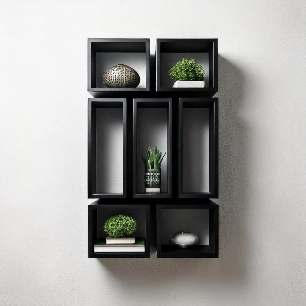 Perfect for living rooms, the 7-piece bookshelf set adds a decorative focal point while keeping books and décor organized. In a game room, the shelves provide a sleek display for collectibles, video games, and memorabilia. For a bedroom, they offer a stylish way to store personal items without compromising space.