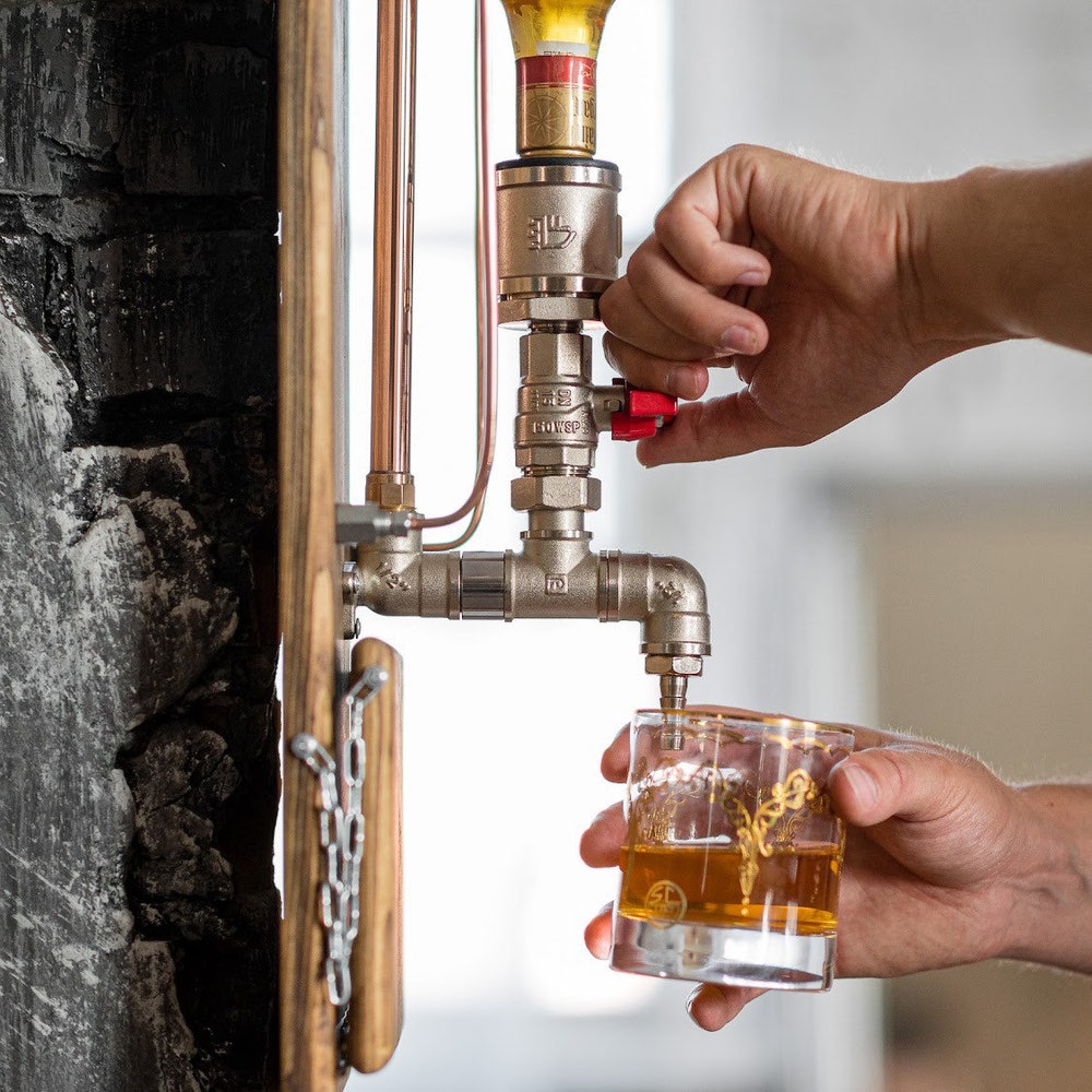 Wall Dispenser for Alcohol – Whiskey Stand for Home Bar – Unique Gifts for Boss Men – Party Drinks Stand – Man Cave Steampunk Home Decor