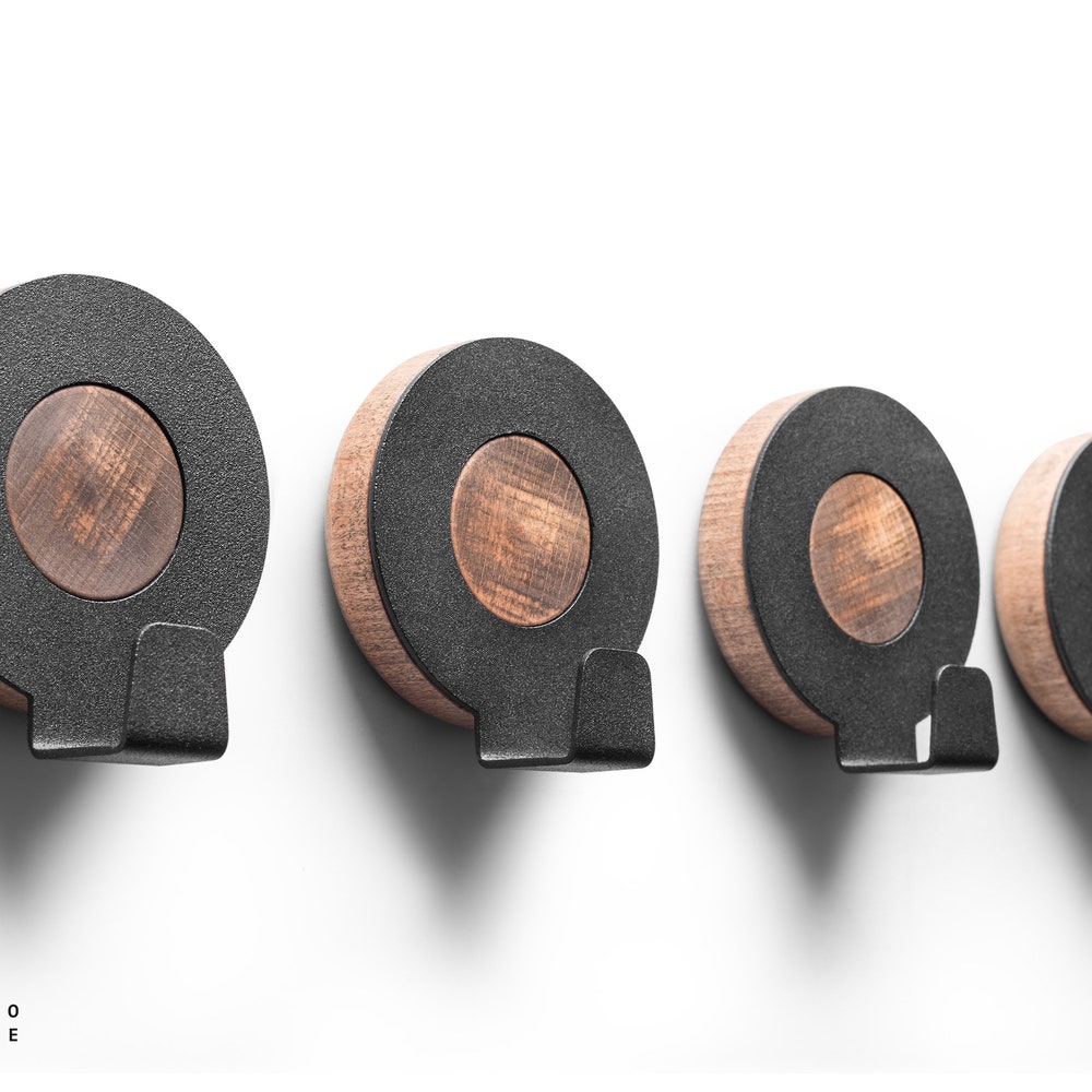 Wall Hooks, Black Metal and Wooden Hooks for Hanging Clothes, Handbags, Towels, Keys and Entryway Accessories