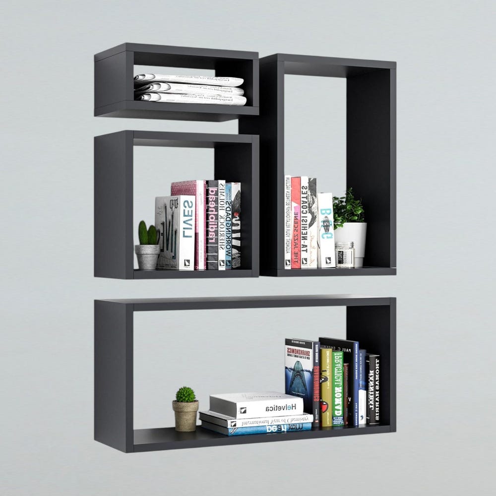 Wall Mount Shelf Set of 4 | Floating Cube Shelves for Home & Commercial Use | Large Black Shelving Unit