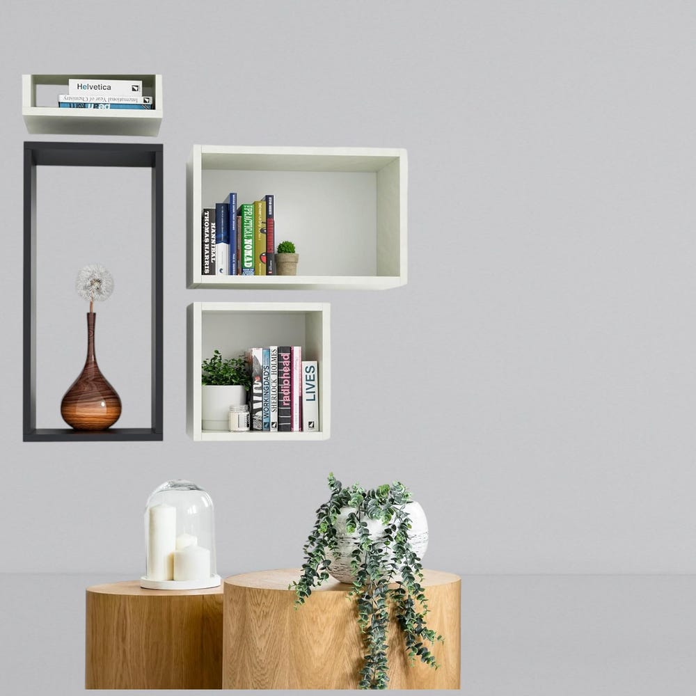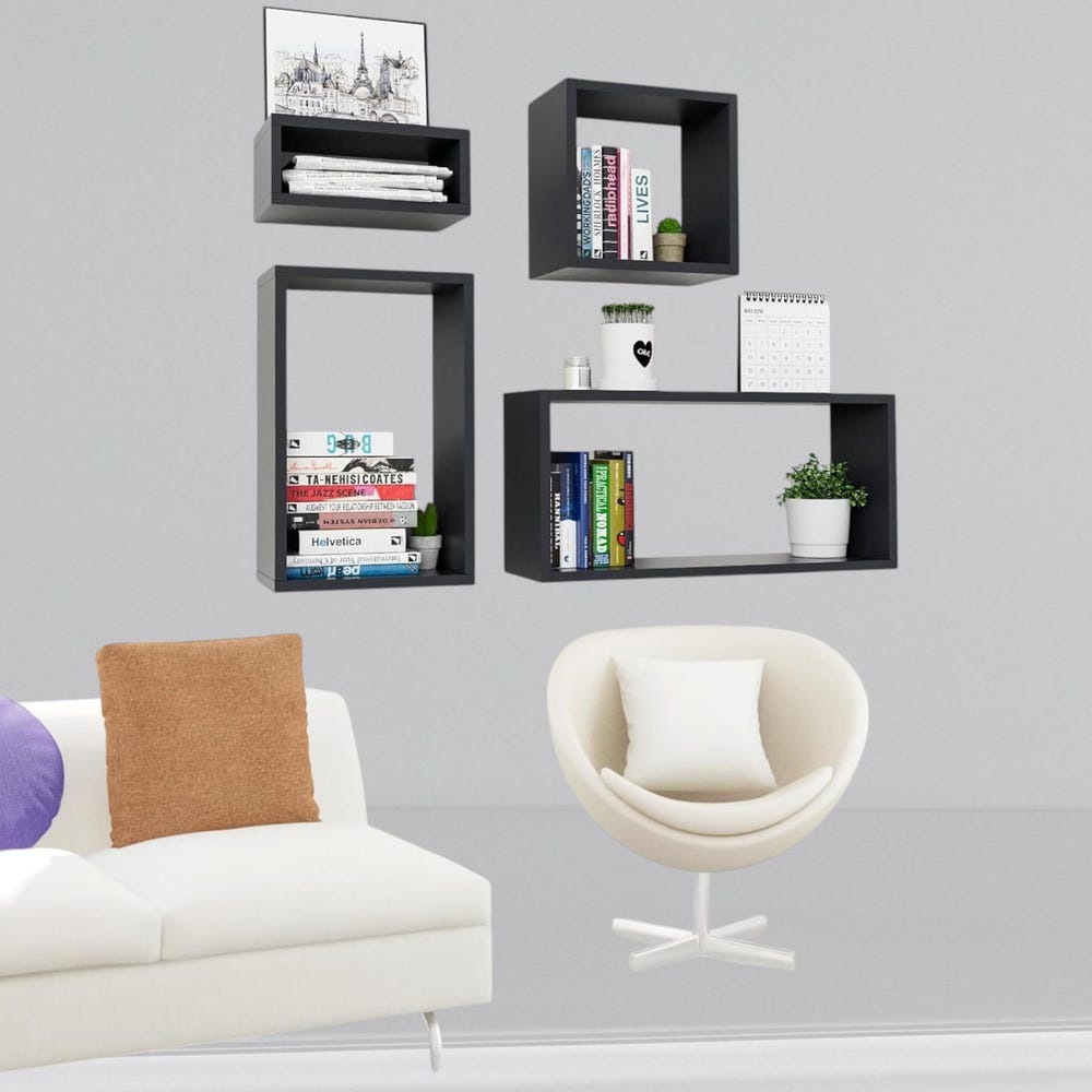 Organize and elevate your space with this Wall Mount Shelf Set of 4. Perfect for living rooms, kitchens, bathrooms, offices, or commercial spaces, these versatile floating cube shelves combine functionality with a sleek, modern design.
