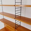Wall-mounted original Swedish string shelf system, bookcase Ash wood by Nils & Kajsa Strinning, 1960s
