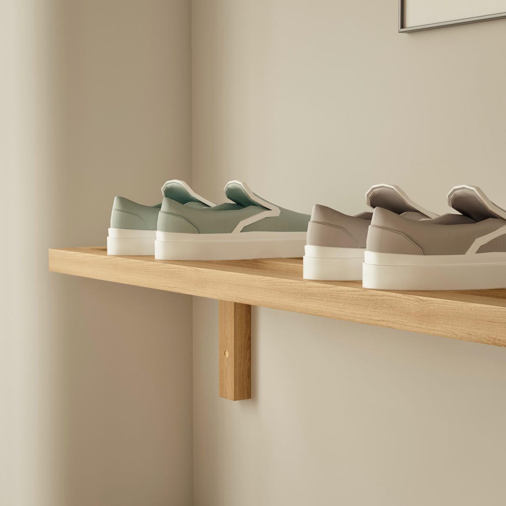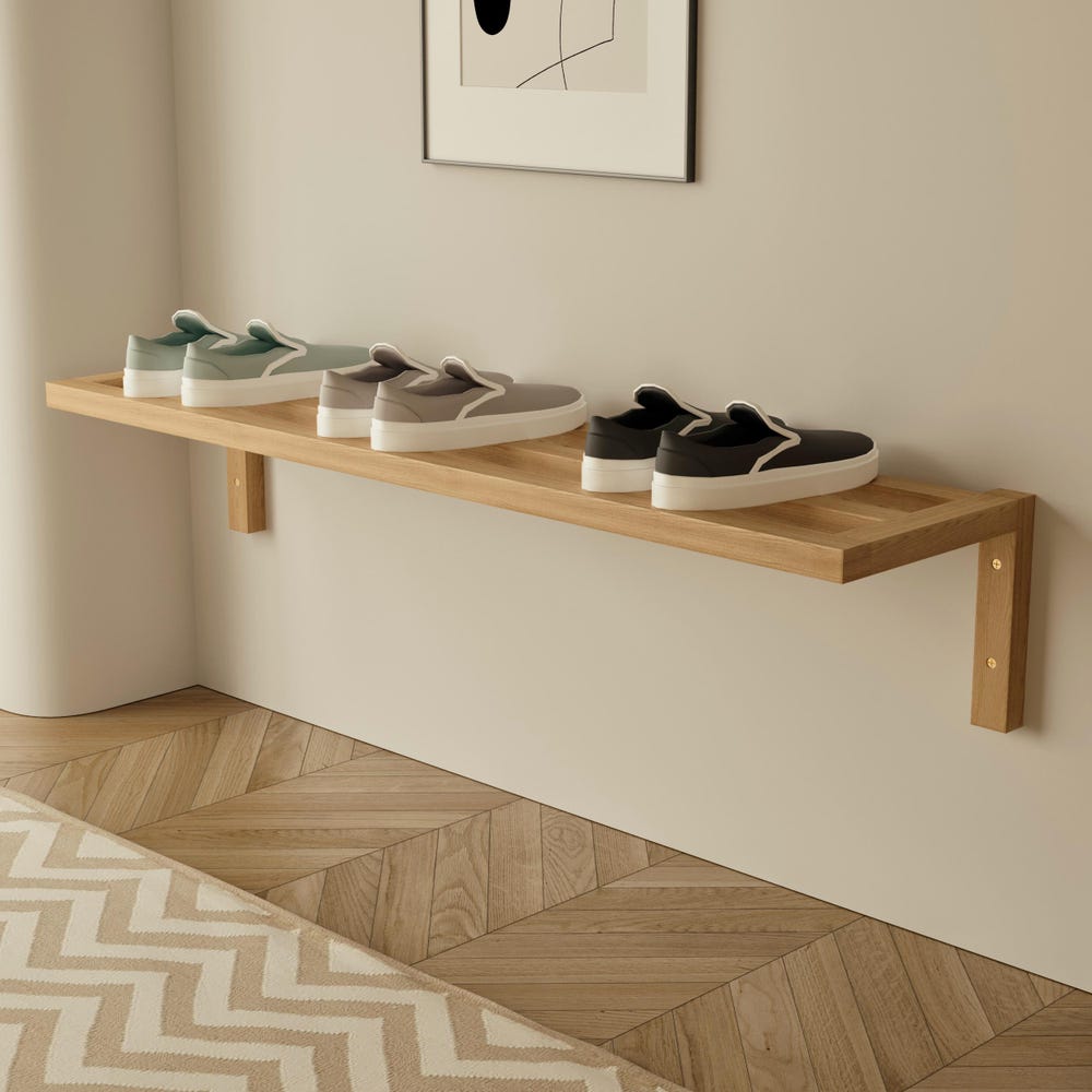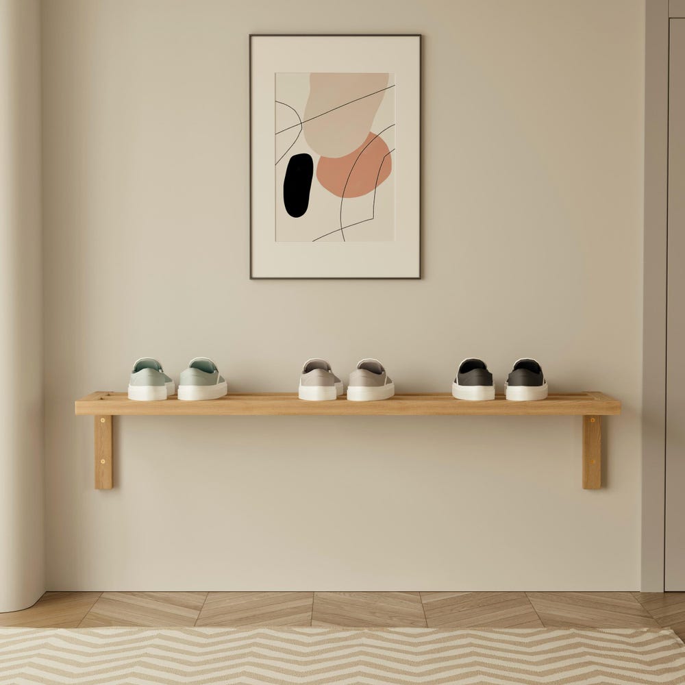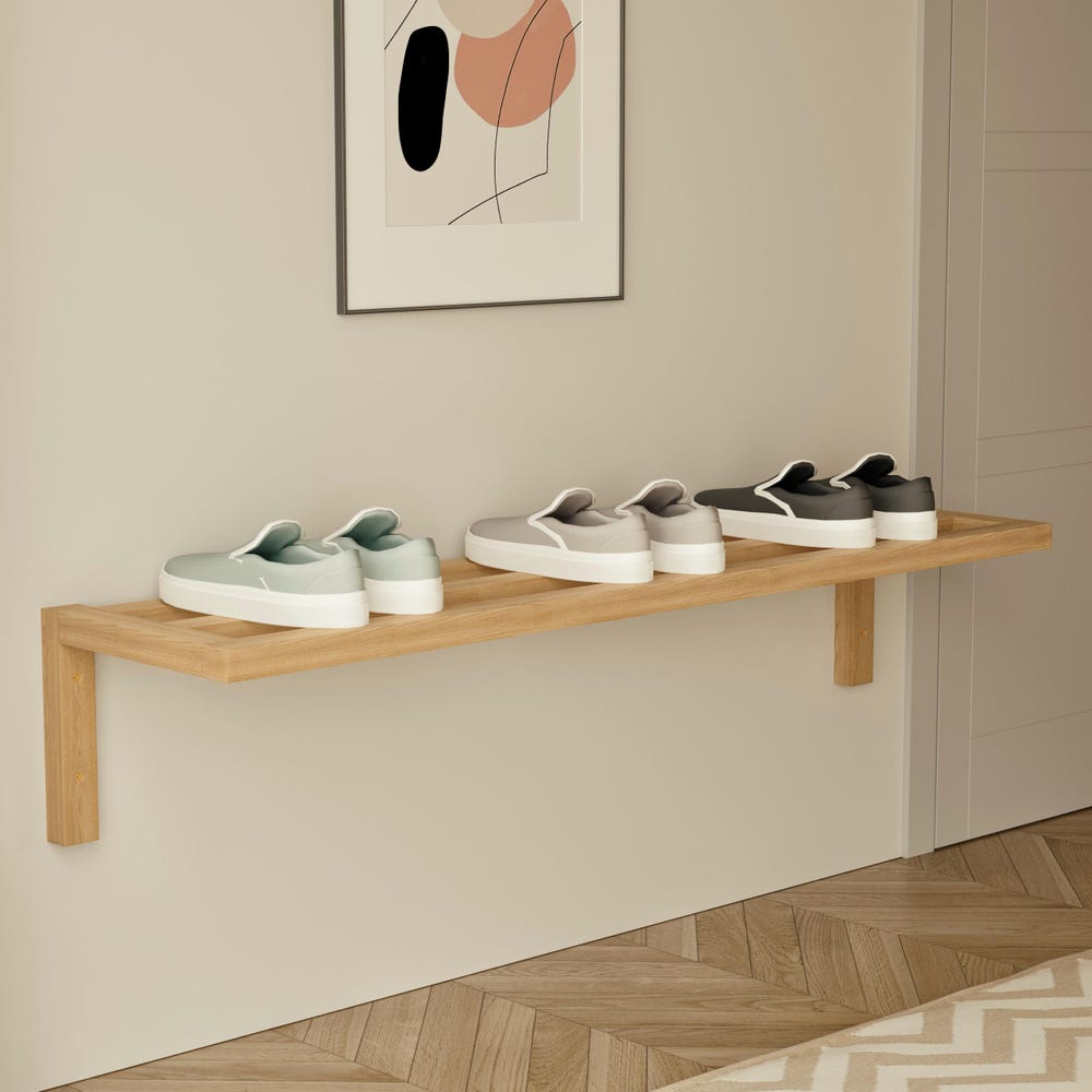 Update your hallway with this wall-mounted wooden shoe rack, the perfect combination of functionality and minimalist design. Crafted from high-quality, eco-friendly wood, this compact organizer allows you to neatly store your shoes while freeing up valuable floor space. Its sleek, modern aesthetic complements any decor style, making it the perfect addition for small apartments, narrow hallways, or busy family homes.