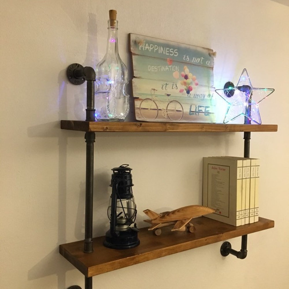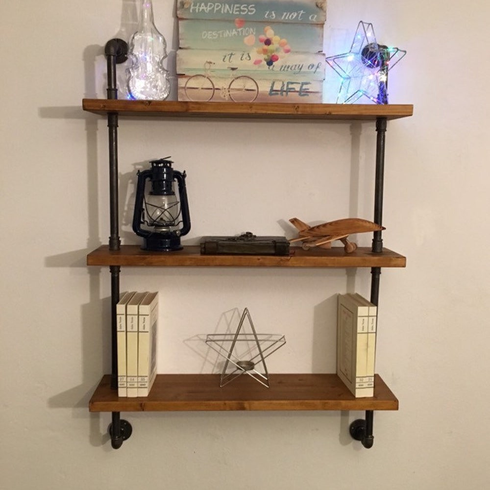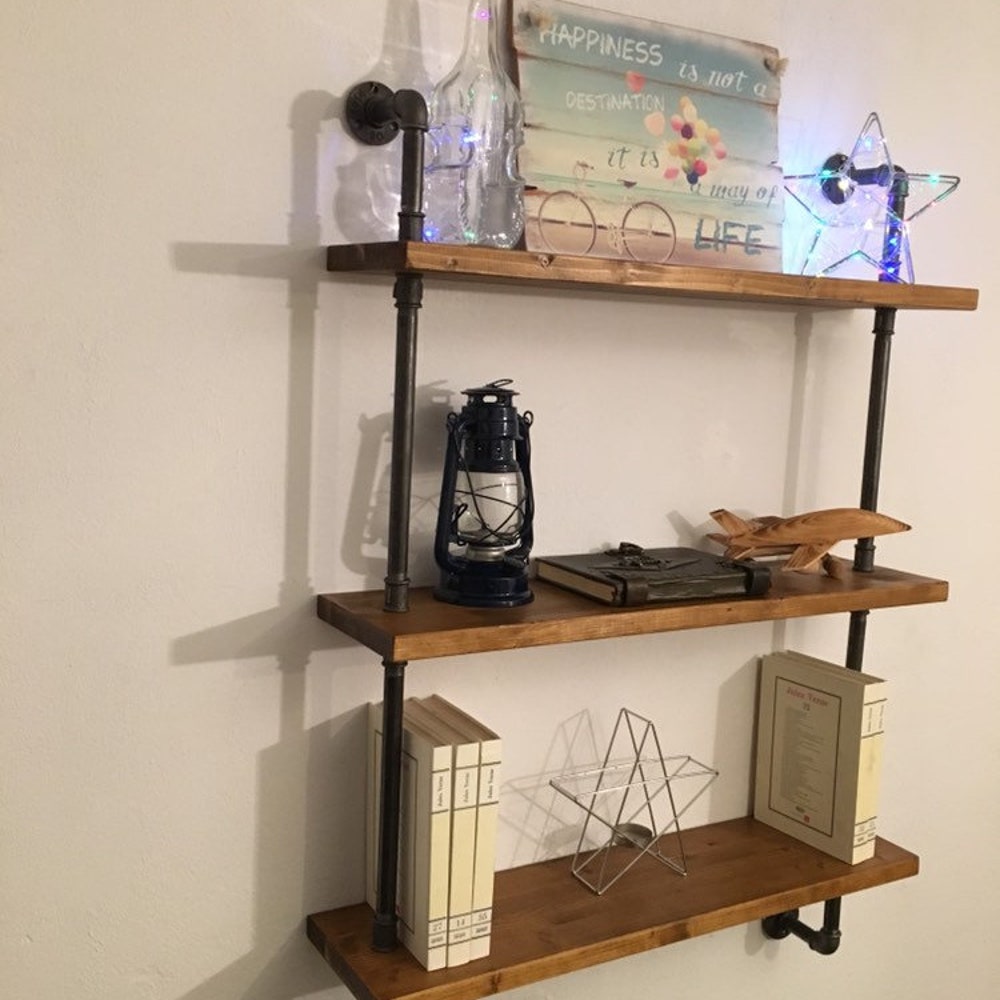 Wall Shelf Unit, Rustic Wood and Pipe Shelves, Open Shelving, Kitchen and Bathroom Storage