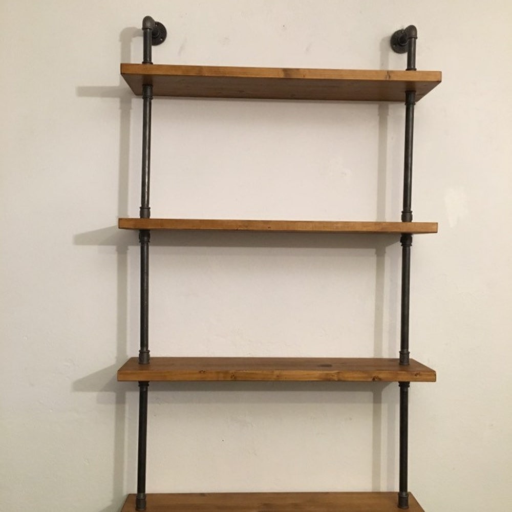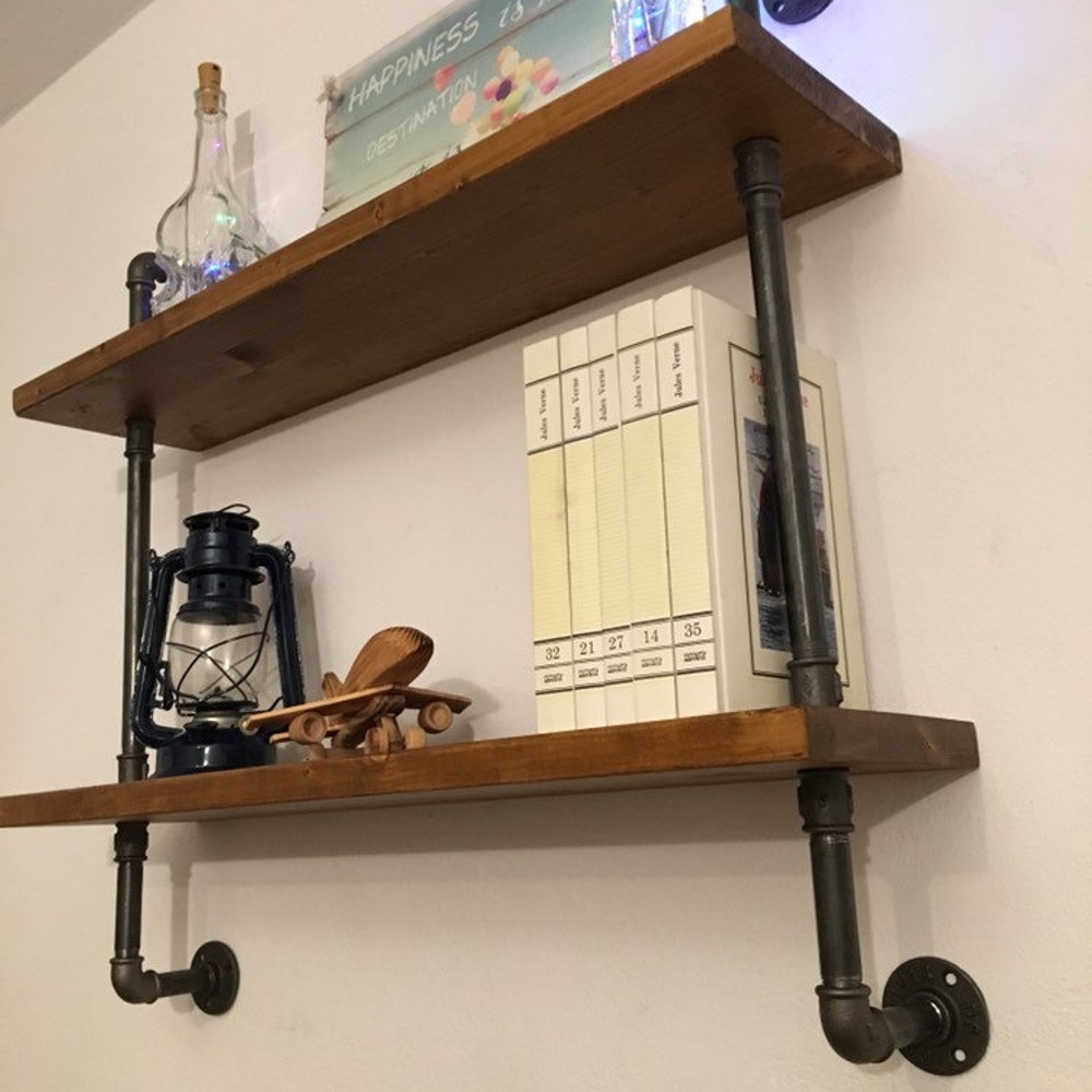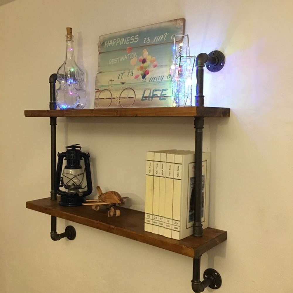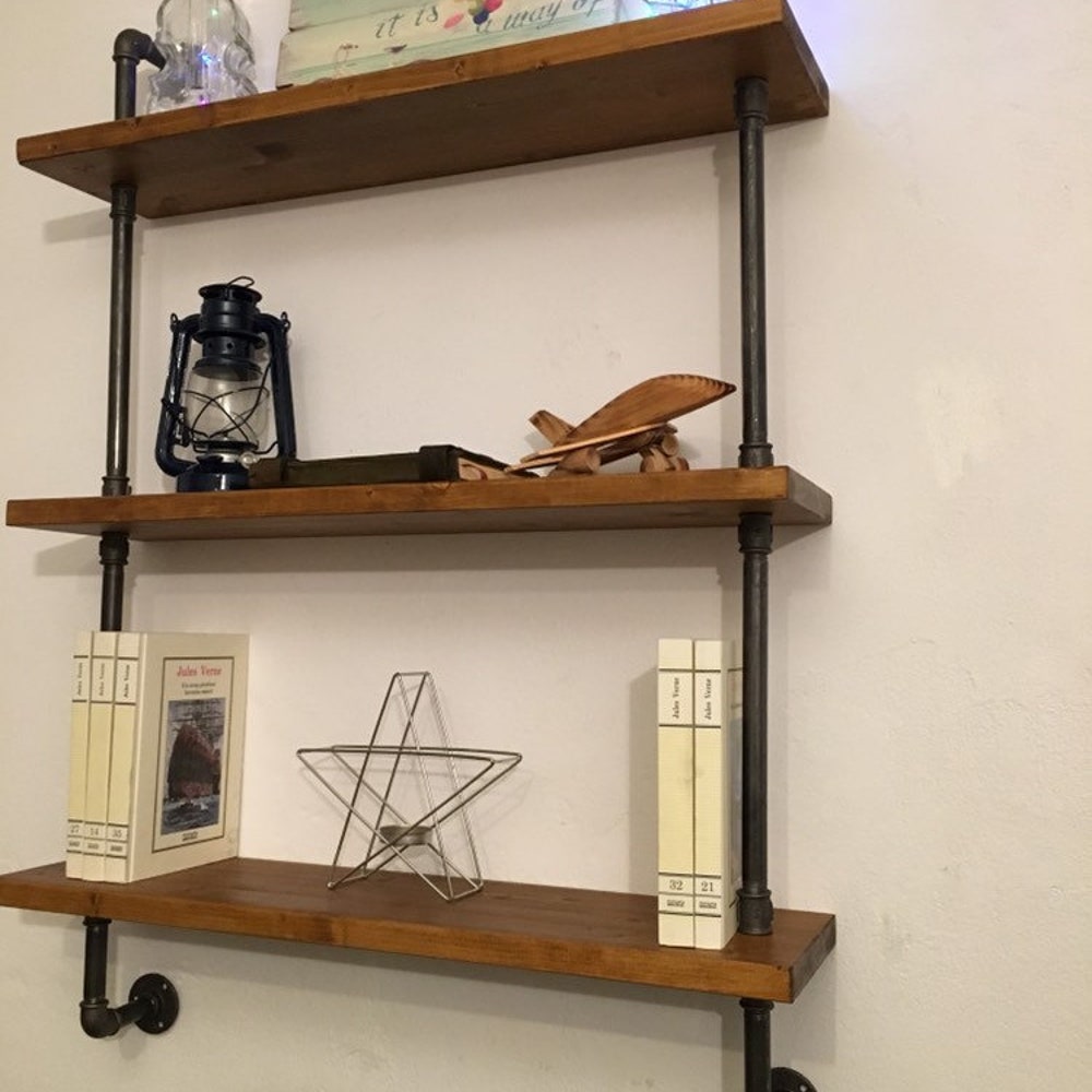 Wall Shelf Unit, Rustic Wood and Pipe Shelves, Open Shelving, Kitchen and Bathroom Storage