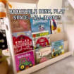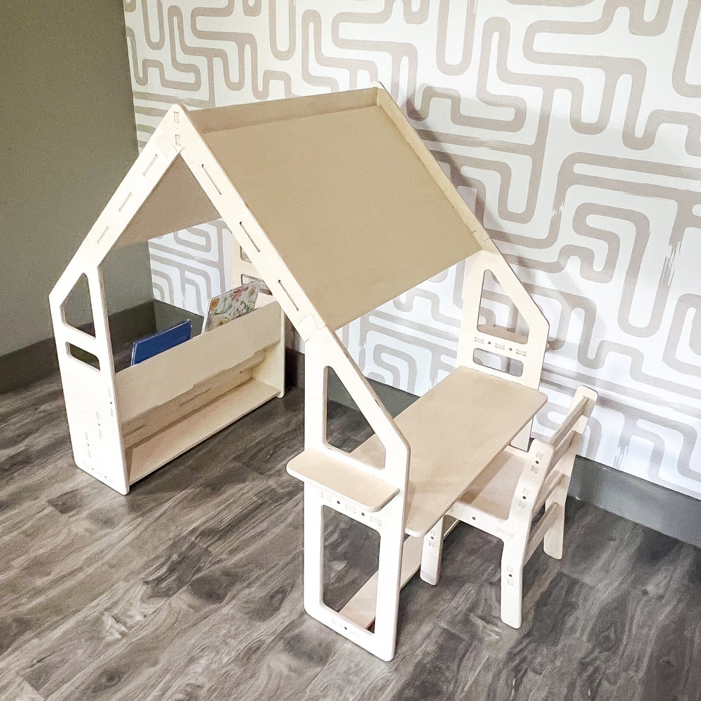 Toddler hideout/playhouse meets book storage meets toddler desk! The all in one combo of your dreams!